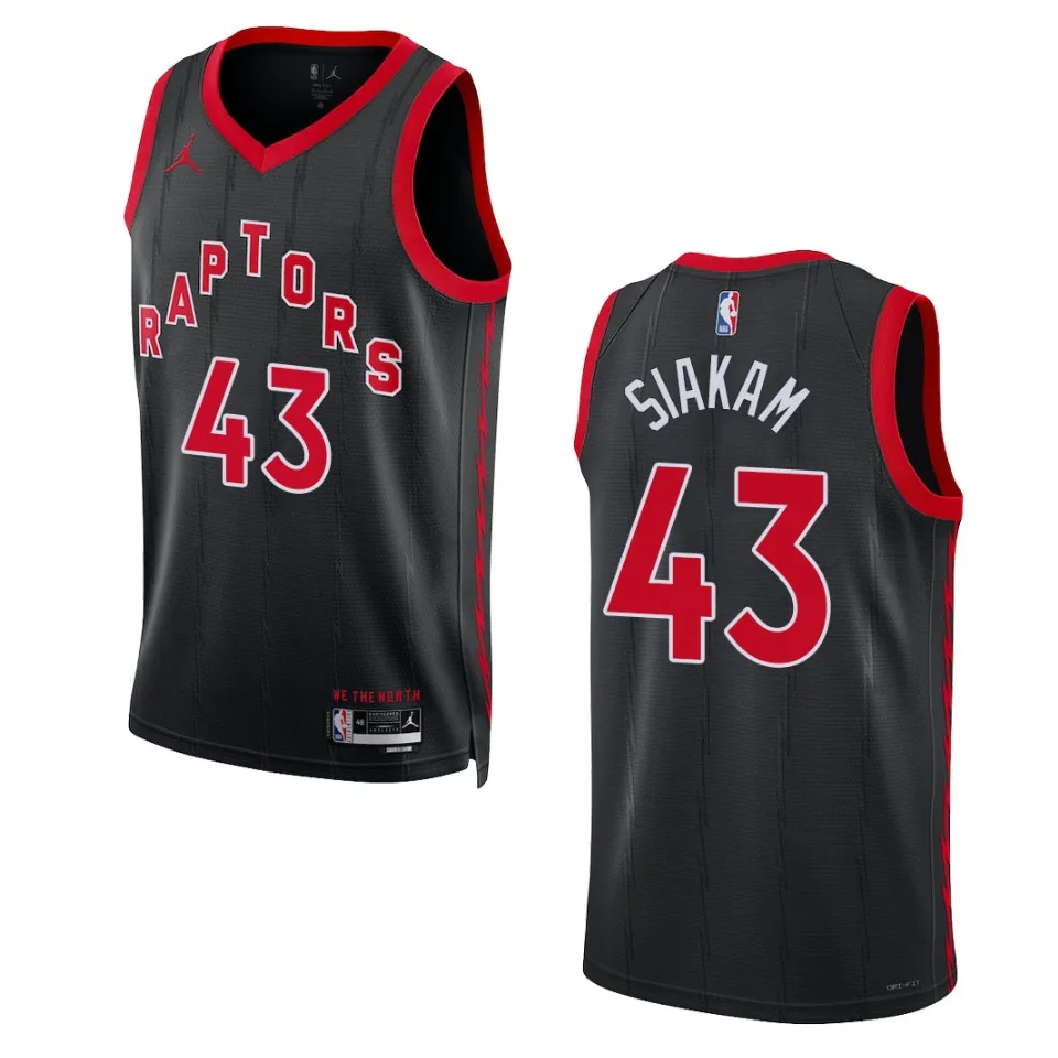 No matter where you are, you need a perfect NBA gear that can help you better show your support! This 2022-23 Statement Edition Toronto Raptors Pascal Siakam Black Swingman Jersey will be your best companion for the next big game! Featuring classic NBA graphics, this sweet gear will keep you comfortable and full of team spirit.
