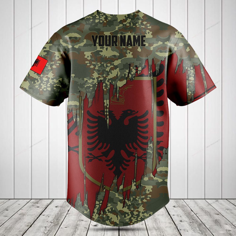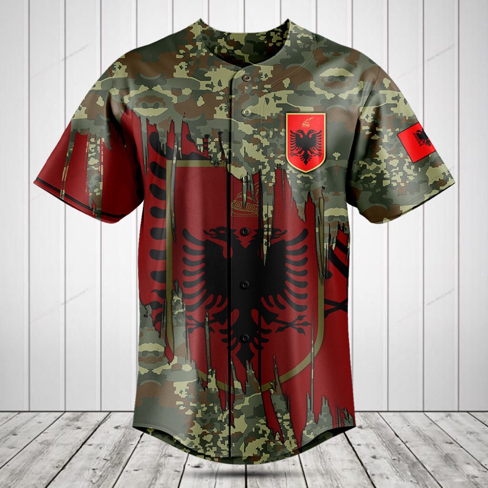 Be the first to review “Albanian Eagle Camo Baseball Jersey – Bold Red & Green Design – Perfect Gift For Fans”