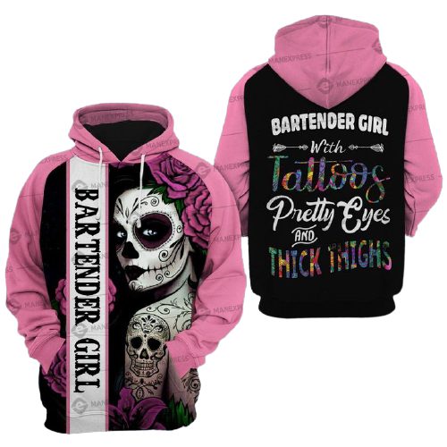 Be the first to review “Bartender Hoodie Bartender Girl With Tattoos Pretty Eyes And Thick Thighs Black Pink Hoodie”