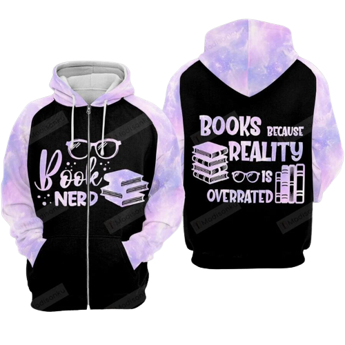 Be the first to review “Book Hoodie Book Nerd Book Because Reality Is Overrated Zip Hoodie Book”