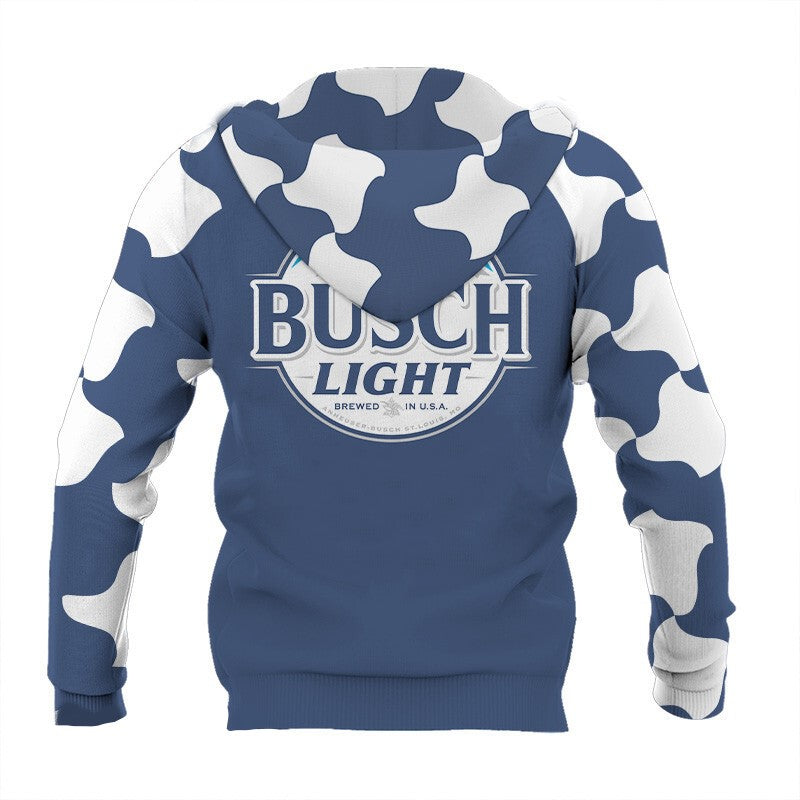 Be the first to review “Busch Light Hoodie Busch Light Cow Pattern Hoodie White Blue Unisex”