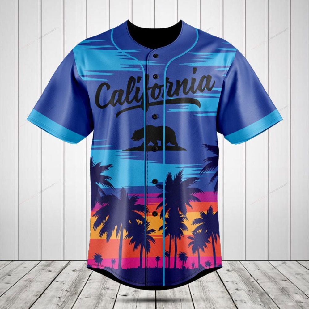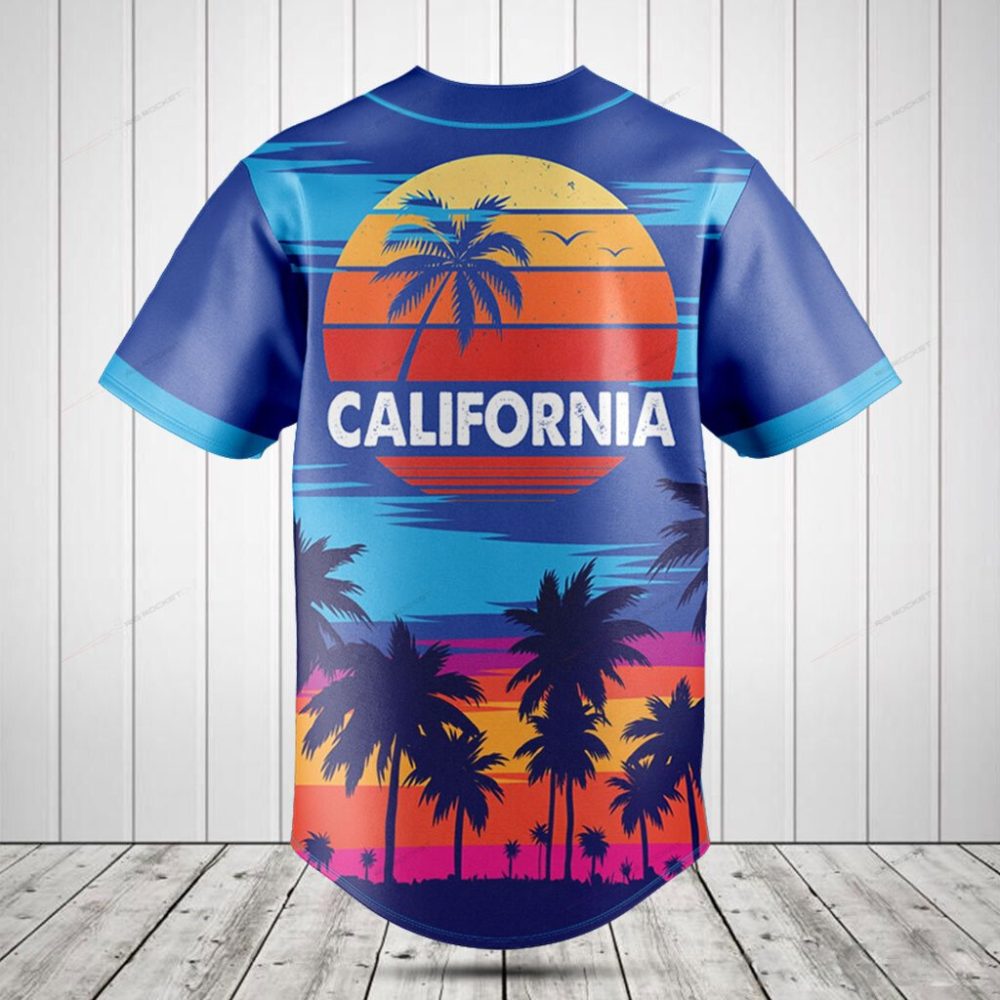 Be the first to review “California Sunset Baseball Jersey – Vibrant Palm Tree Design, Men’S Fashion Top”