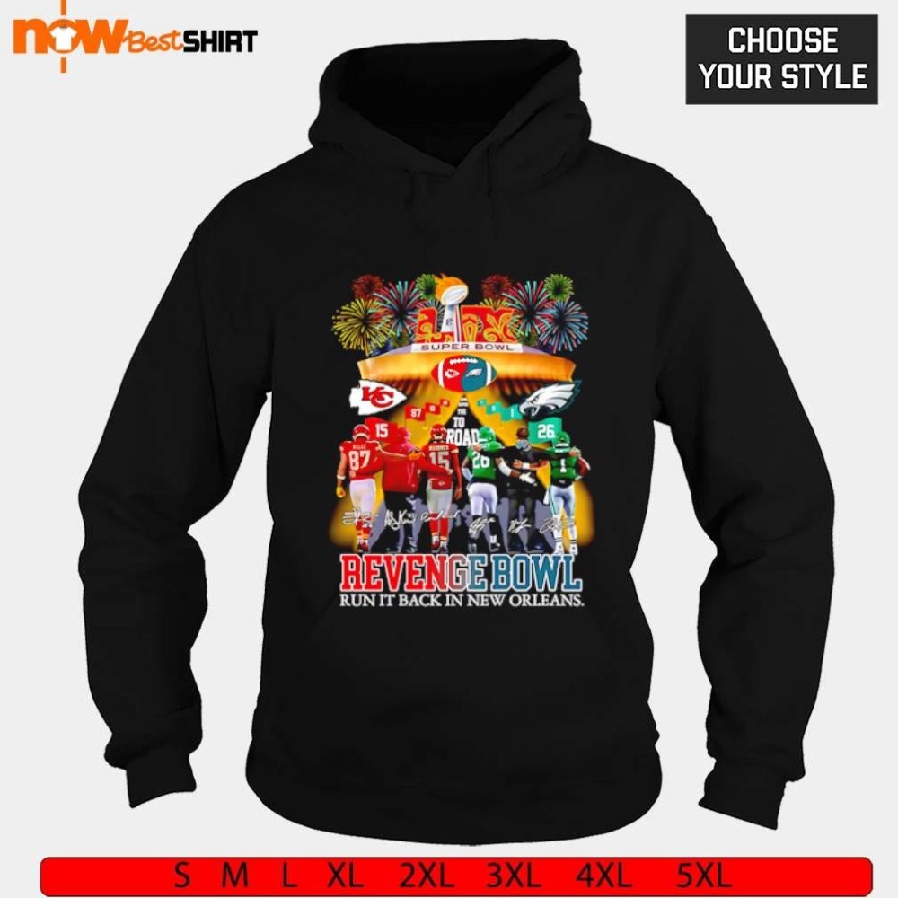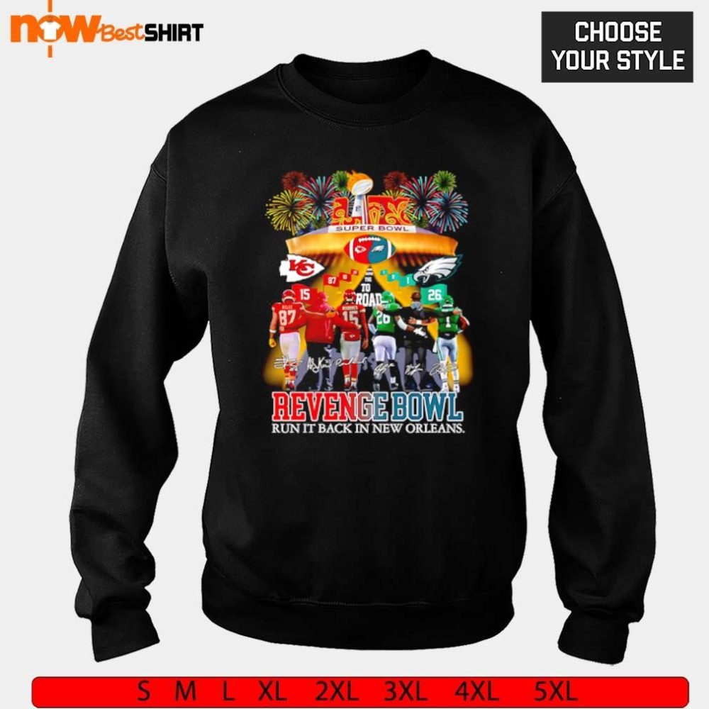Be the first to review “Chiefs Eagles Lix Revenge Bowl Run It Back In New Orleans Signatures Shirt”