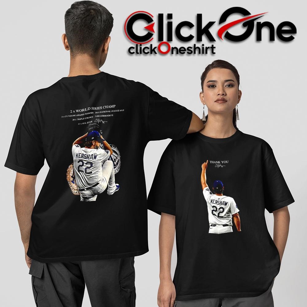 Be the first to review “Clayton Kershaw Los Angeles Dodgers Thank You 2X World Series Champ Two-Sided T-Shirt”