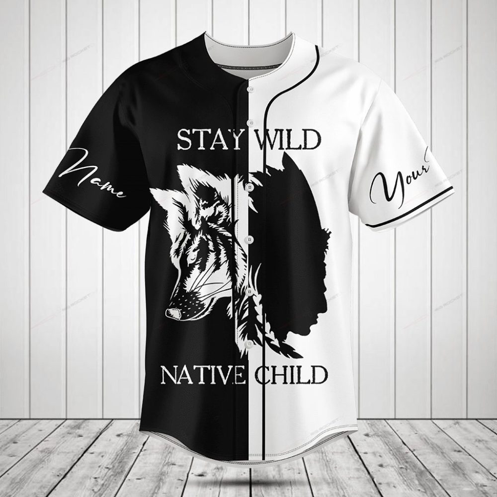 Be the first to review “Custom Black & White Baseball Jersey – Stay Wild Native Child Wolf Design”