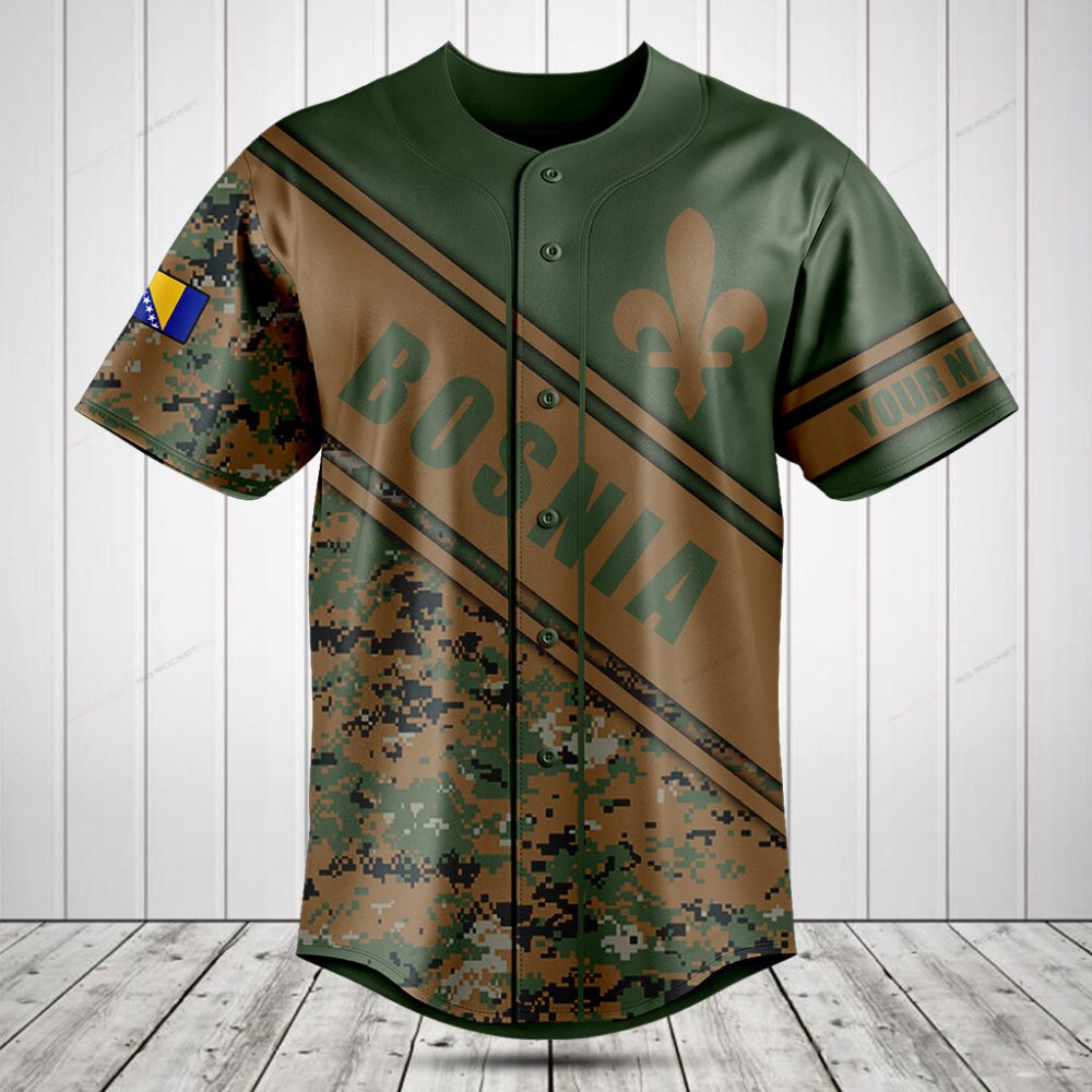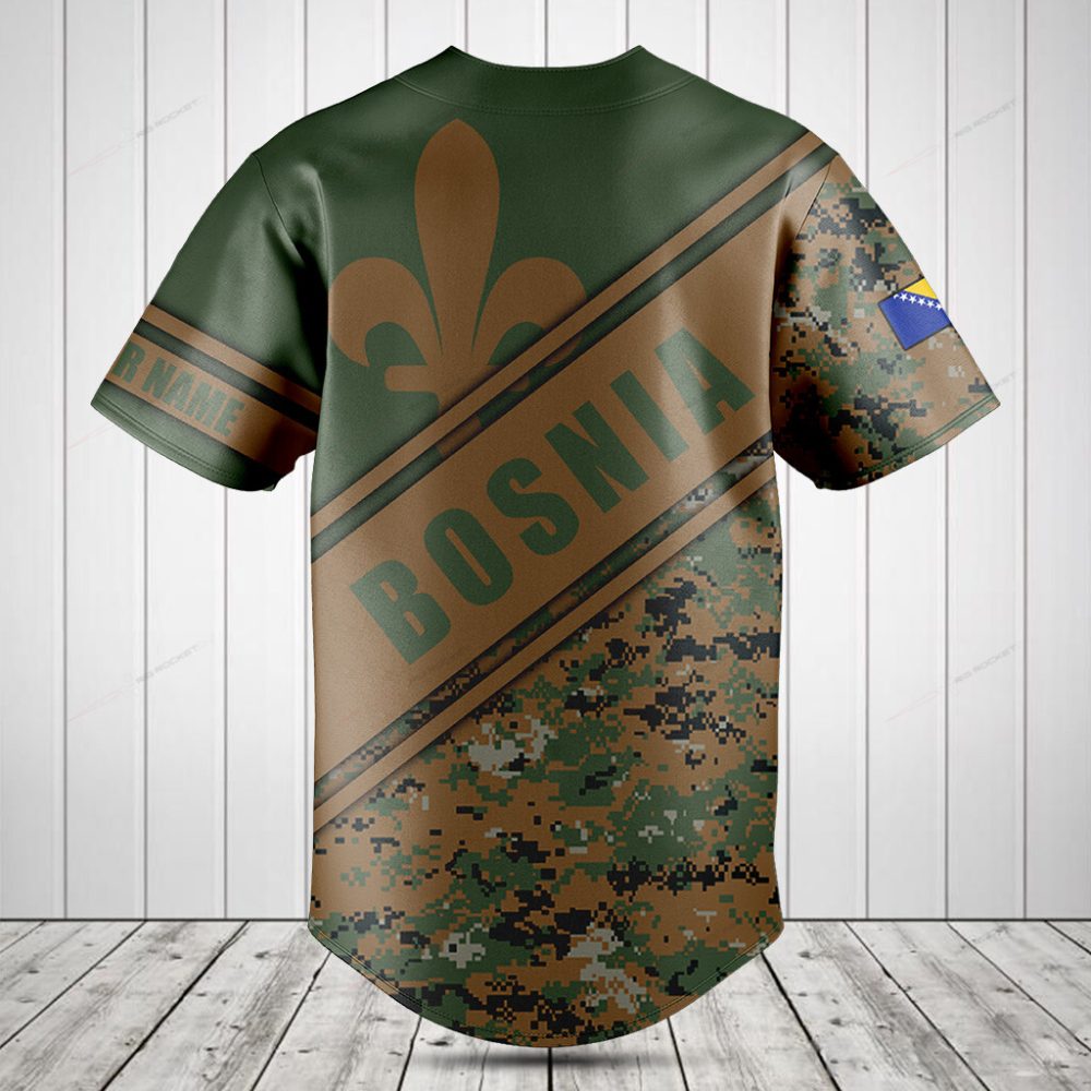 Be the first to review “Custom Bosnia Camo Baseball Jersey – Personalized Name & Flag Design”