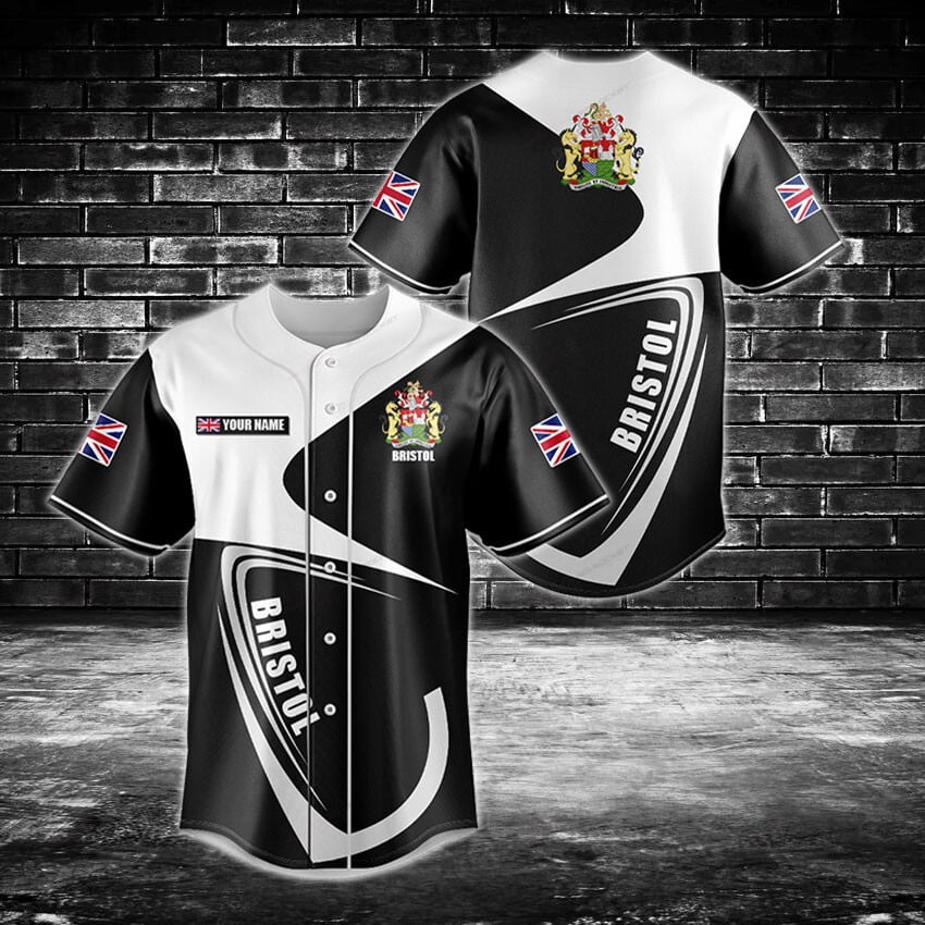 Be the first to review “Custom Bristol Baseball Jersey – Personalized, Uk Flag Design, Black & White”
