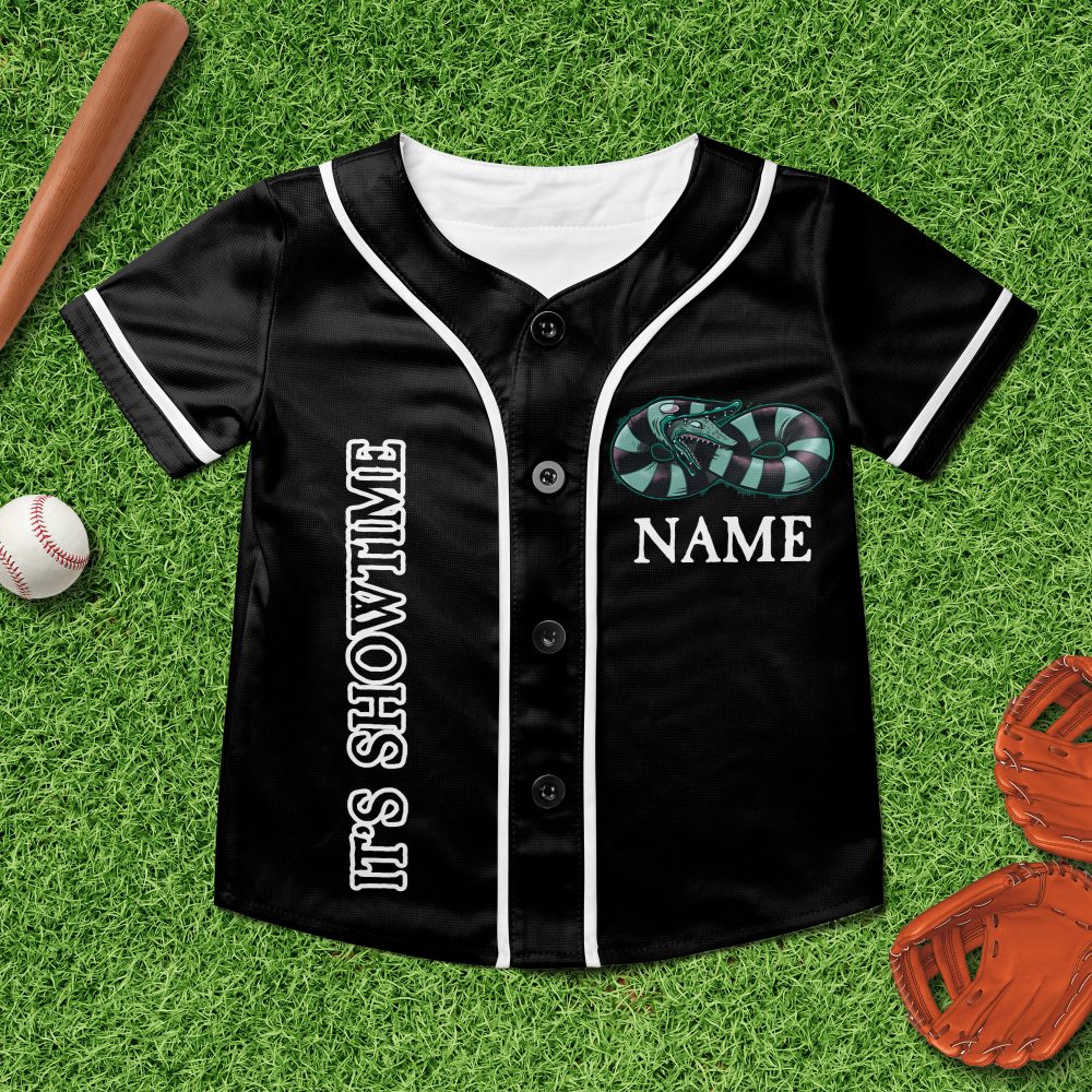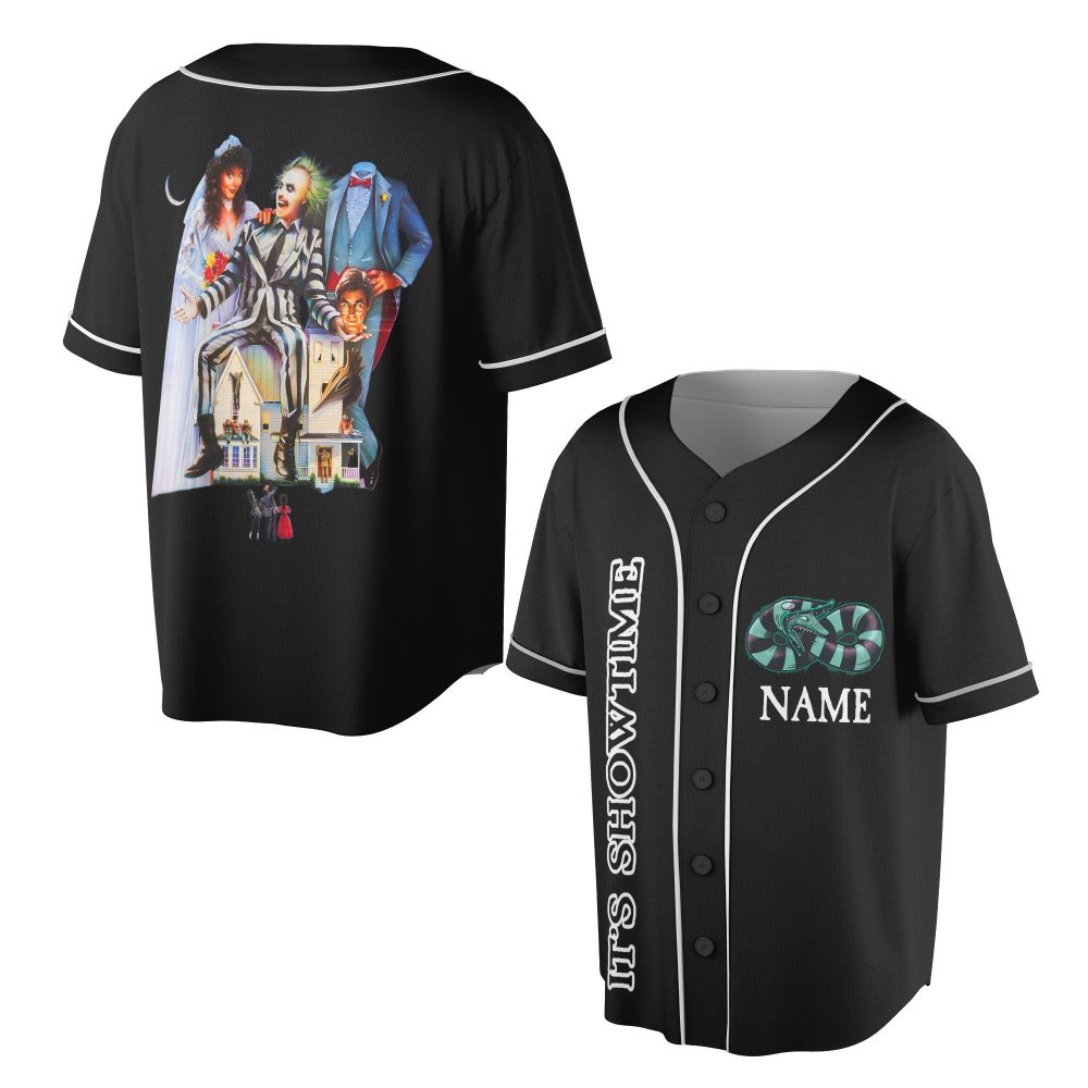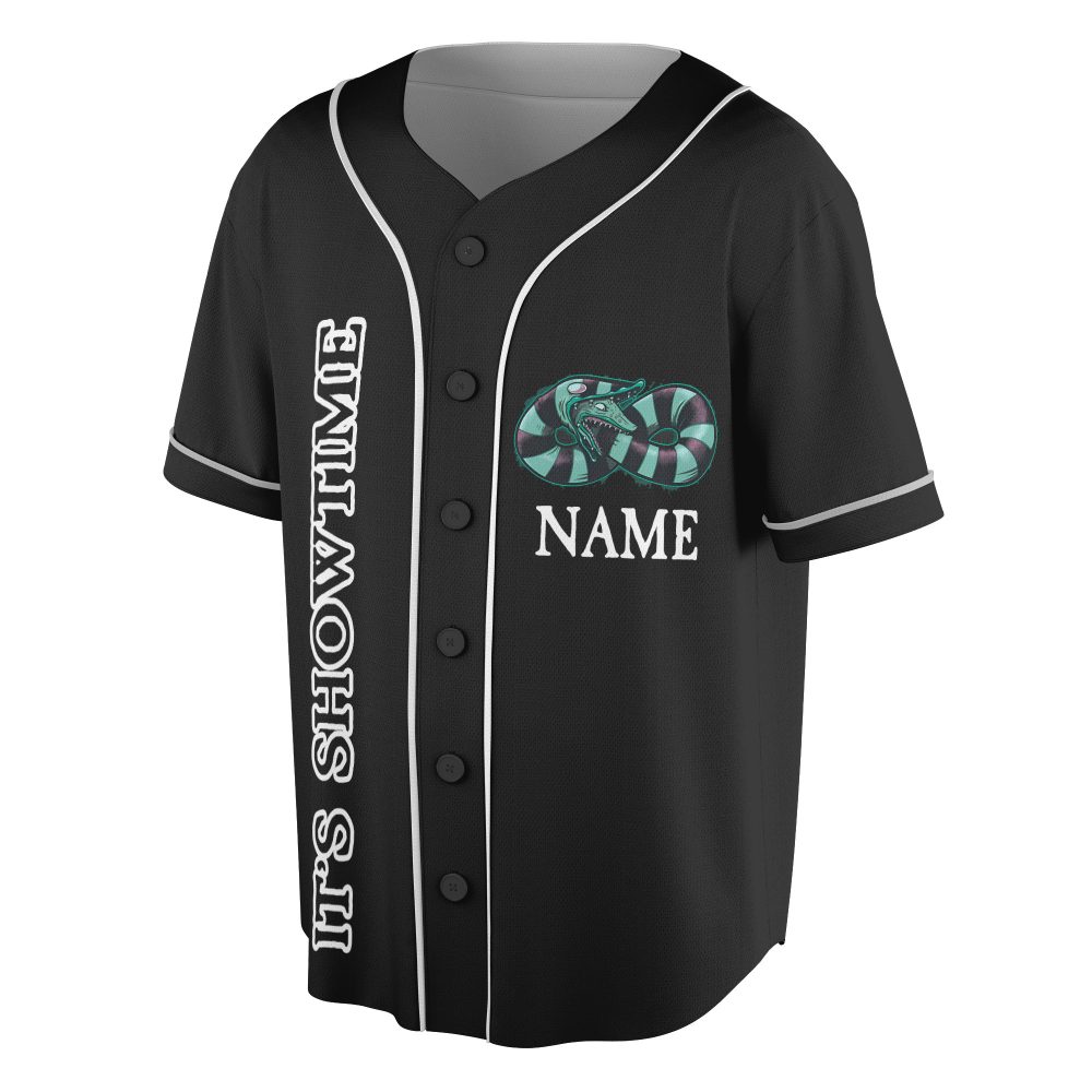 Be the first to review “Custom Horror-Themed Baseball Jersey – It’S Showtime Graphic Tee For Fans”