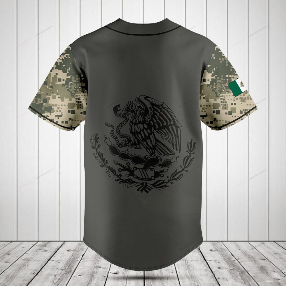 Be the first to review “Custom Mexican Flag Baseball Jersey – Camo Sleeves & Personalized Name”