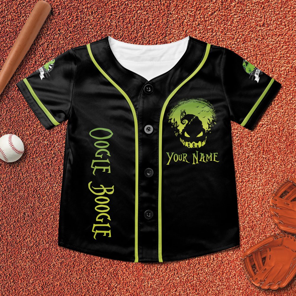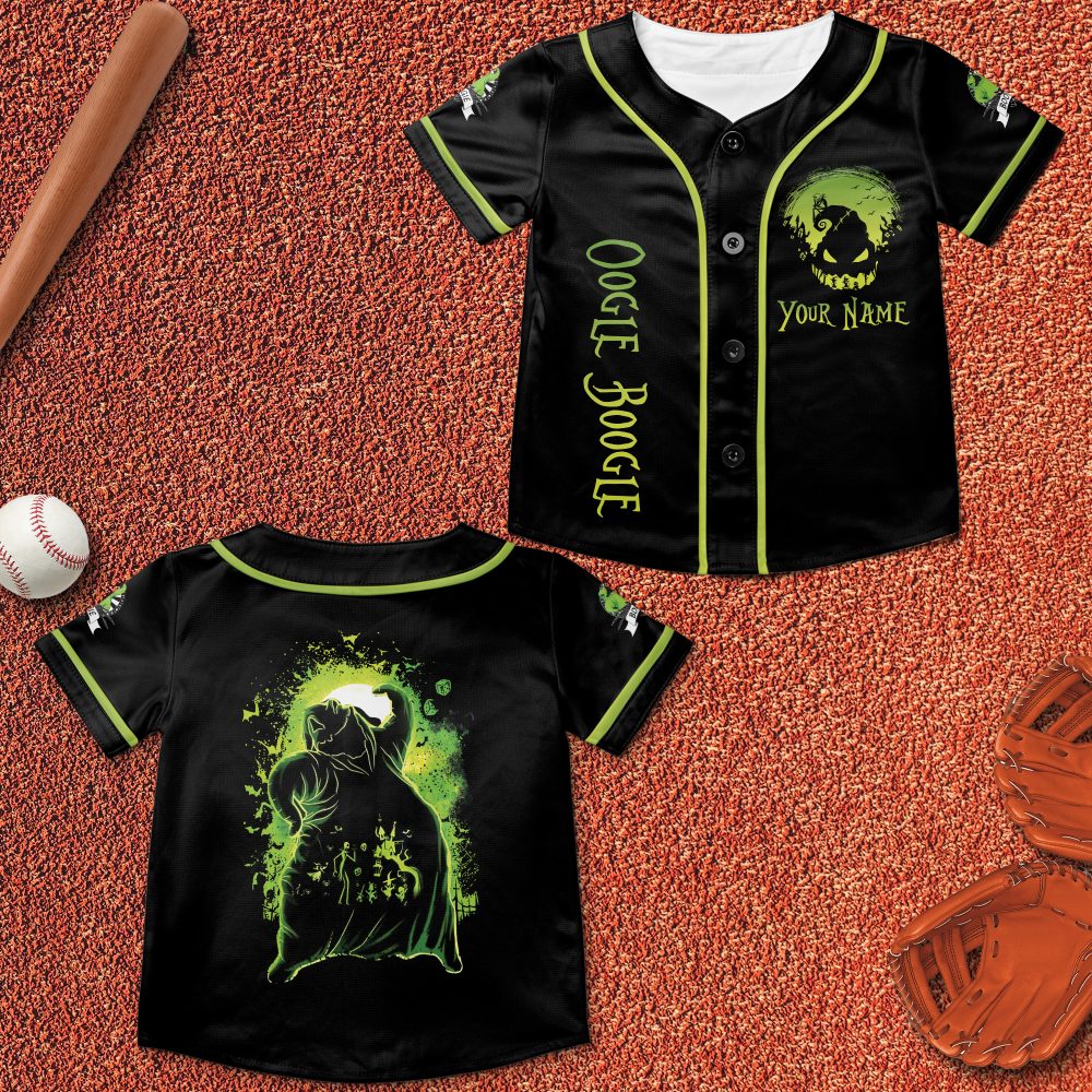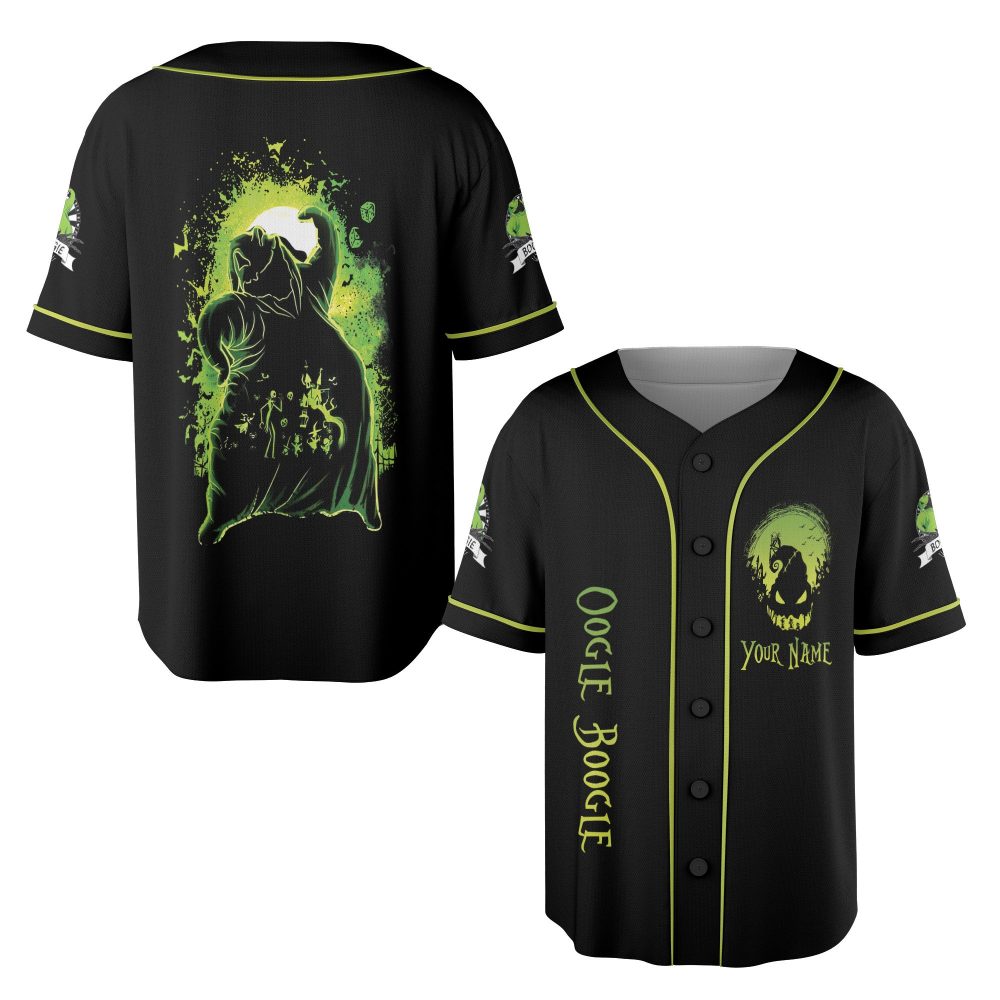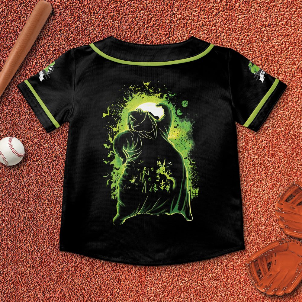 Be the first to review “Custom Oogie Boogie Baseball Jersey – Glow In The Dark Halloween Shirt”