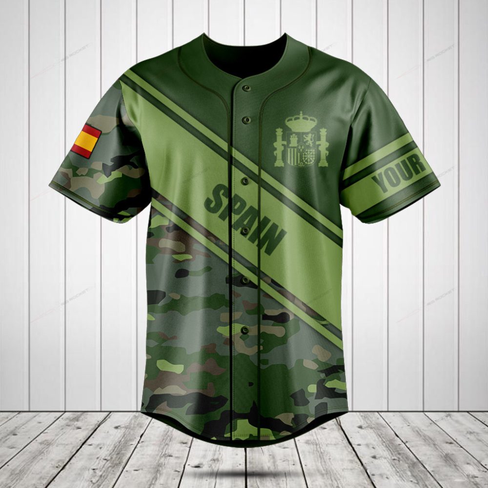 Be the first to review “Custom Spain Camo Baseball Jersey – Personalized Military Style Shirt For Sports Fans”