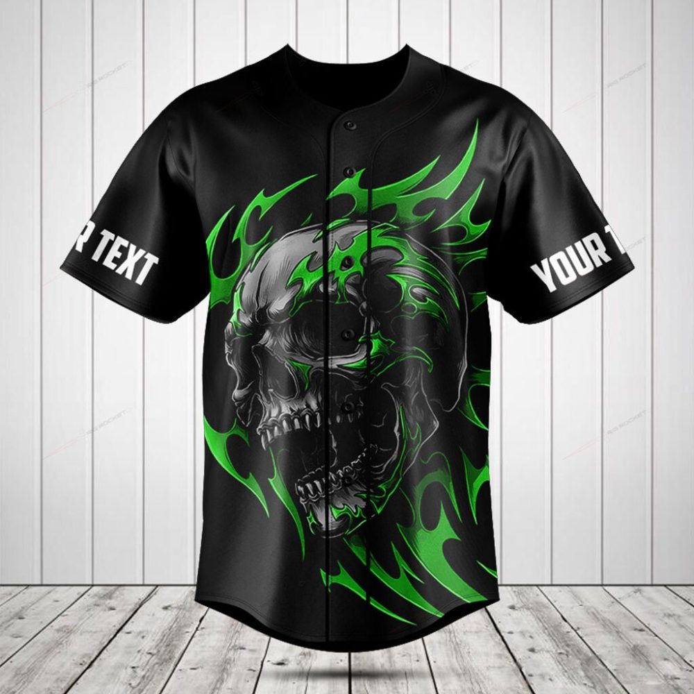 Be the first to review “Customizable Black Skull & Flames Baseball Jersey – Bold Graphic Tee For Unique Style”