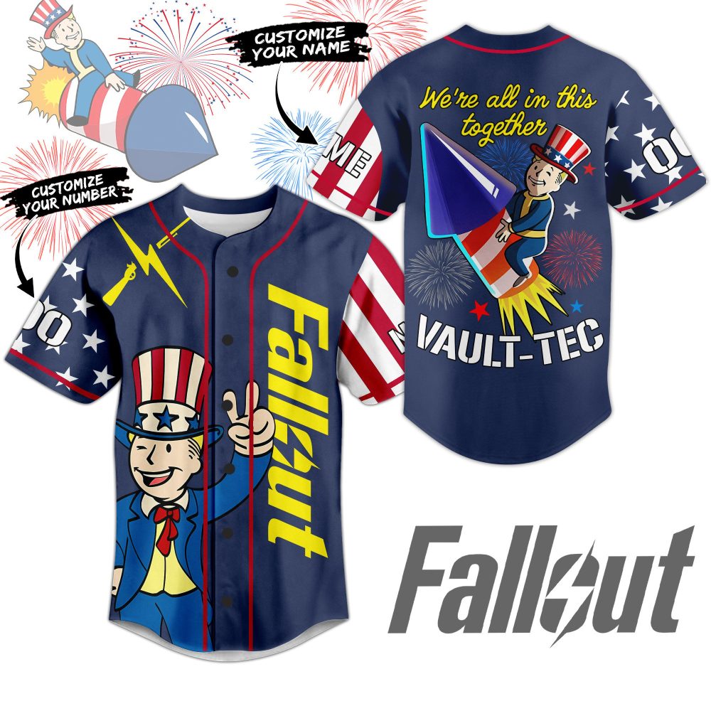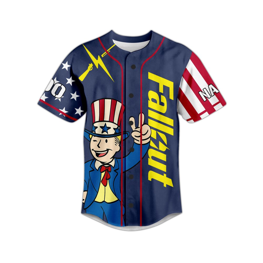 Be the first to review “Customizable Fallout Vault-Tec Baseball Jersey – Unique Patriotic Design, Add Name & Number!”