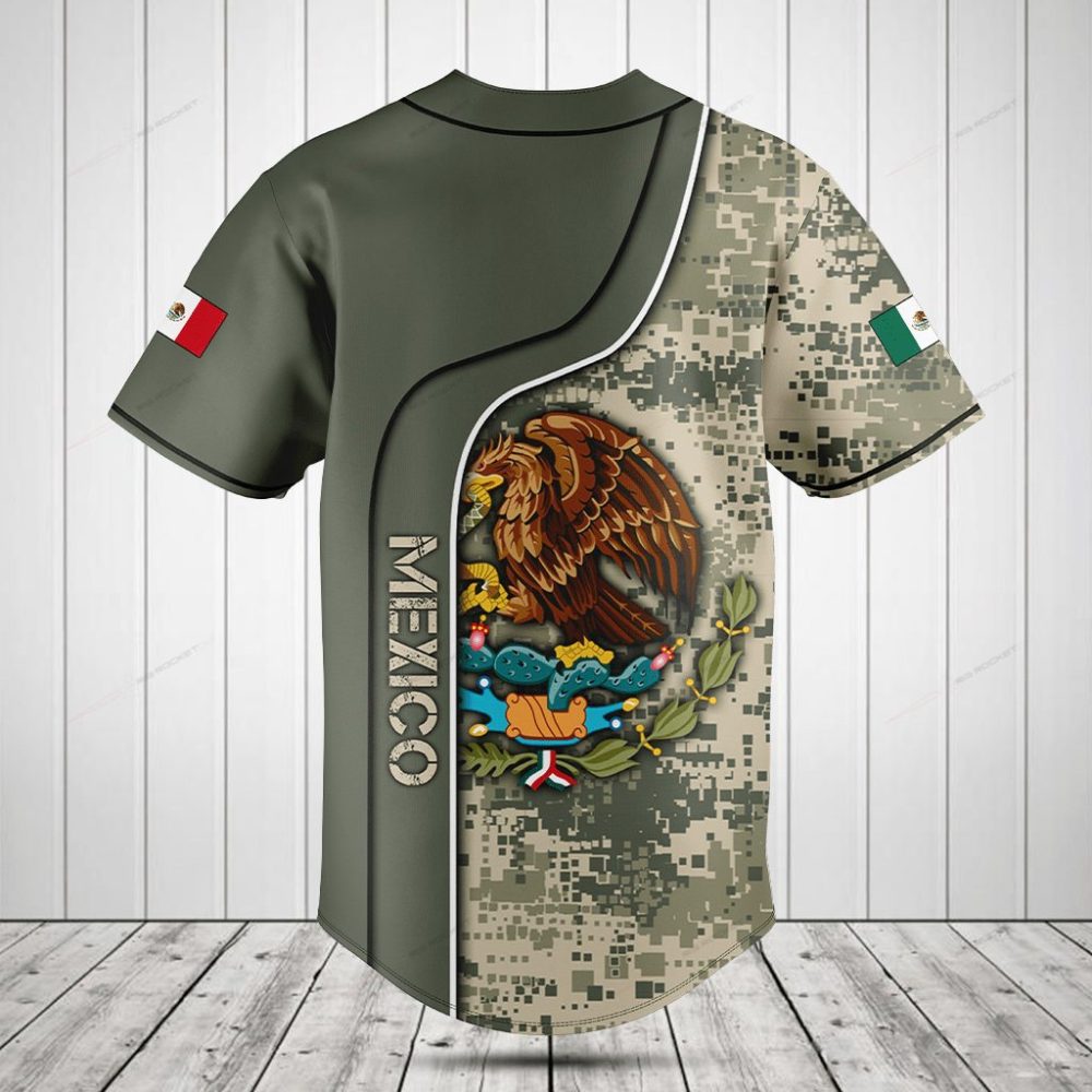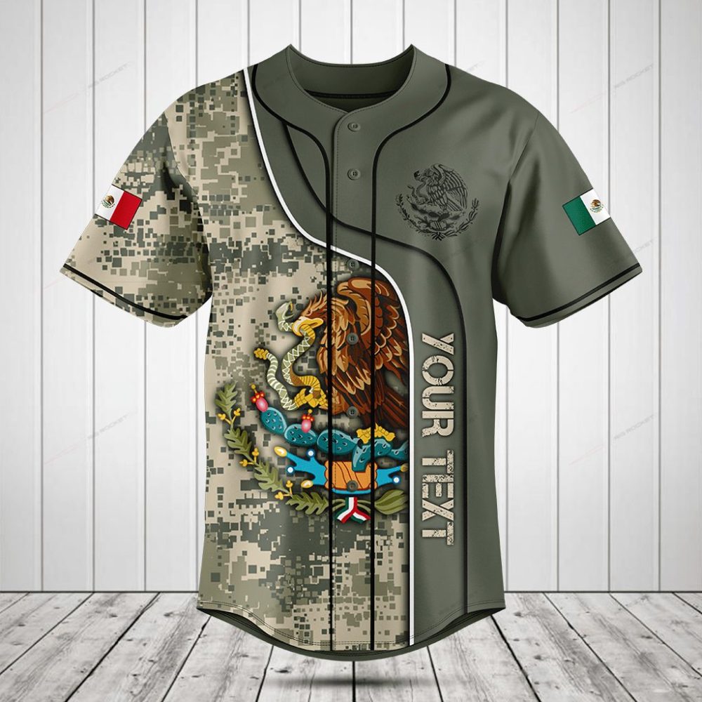 Be the first to review “Customizable Mexican Flag Baseball Jersey – Digital Camo Design, Perfect For Sports Fans & Gifting”