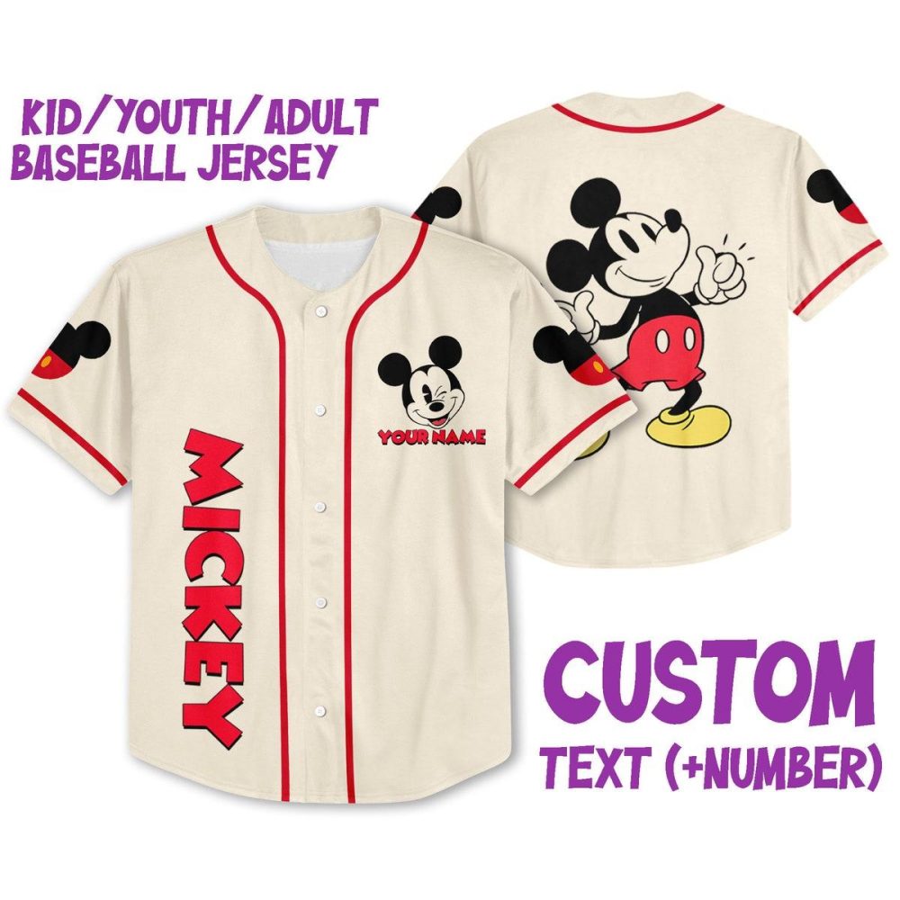 Be the first to review “Customizable Mickey Baseball Jersey For Kids/Youth/Adults – Add Name & Number!”