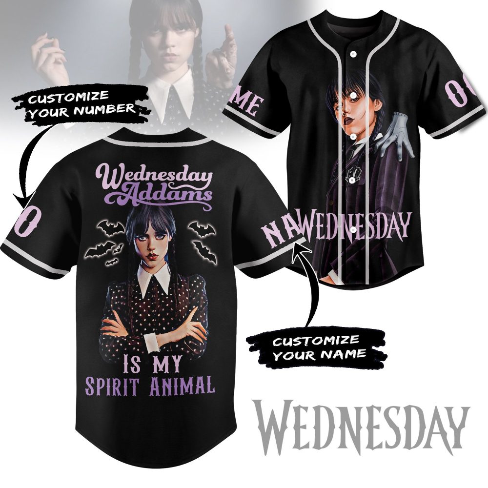 Be the first to review “Customizable Wednesday Addams Baseball Jersey – Personalized Name & Number – Unique Gothic Style”