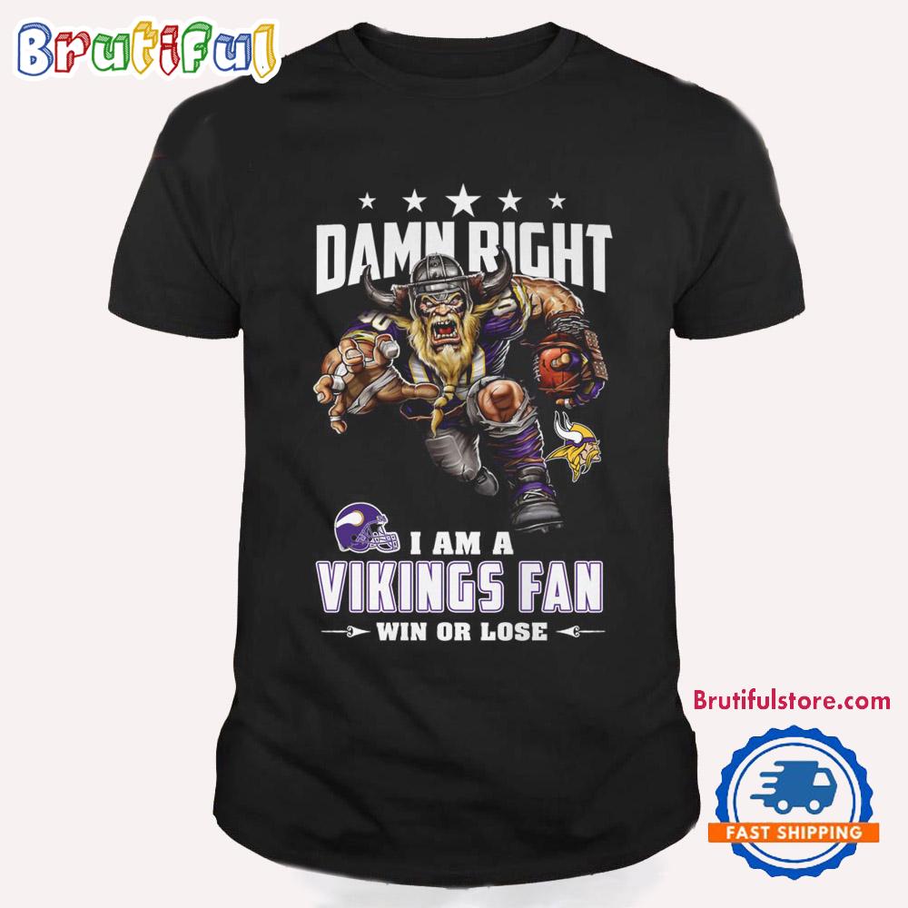 Be the first to review “Damn Right I Am A Minnesota Vikings Win Or Lose Mascot Football Design T Shirt”