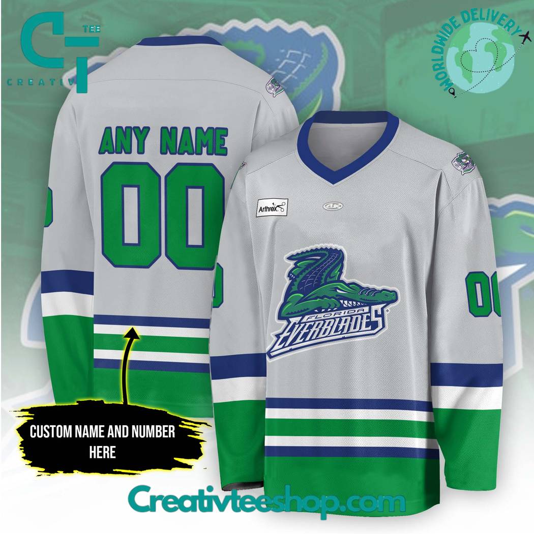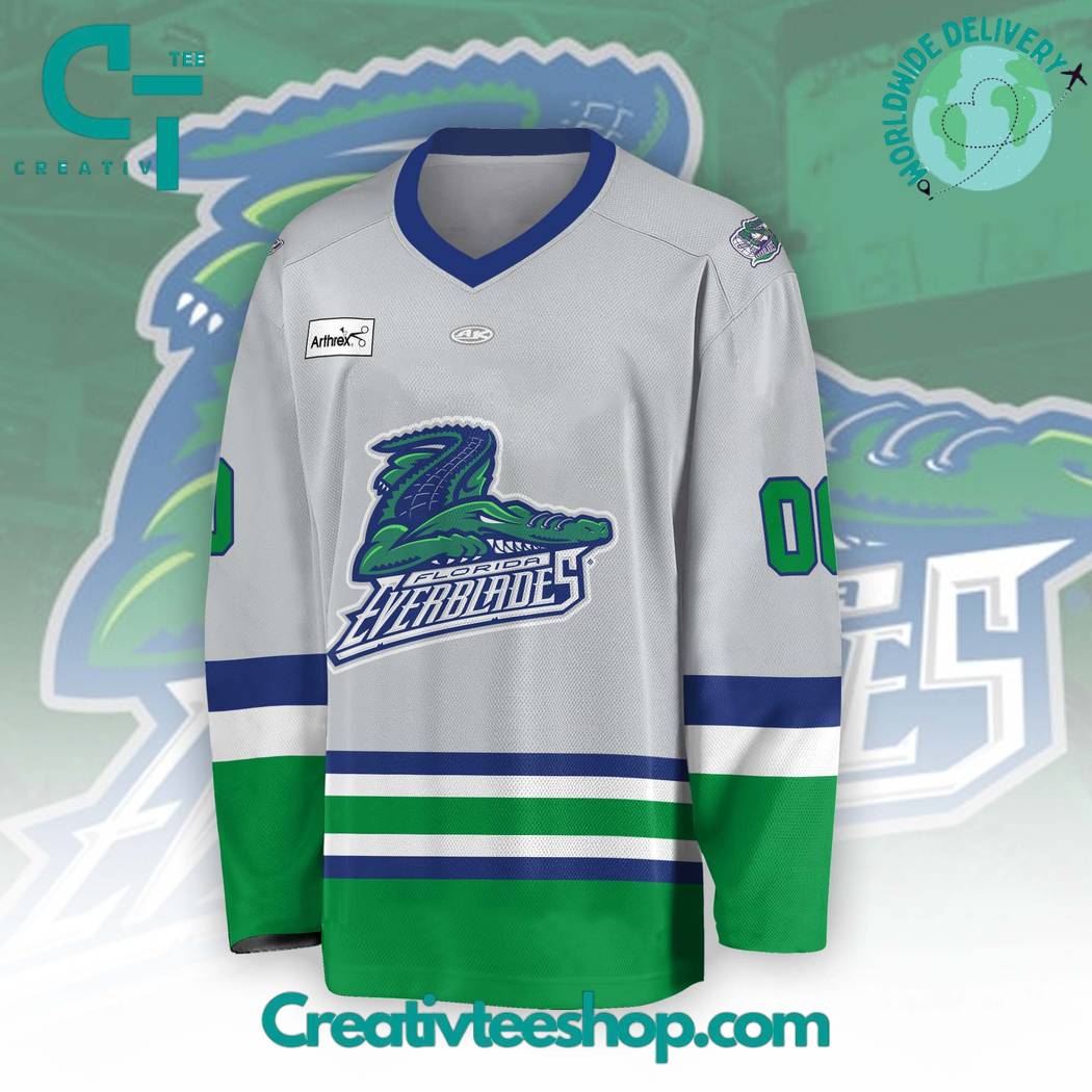 Be the first to review “Echl Florida Everblades Grey Hockey Jersey”
