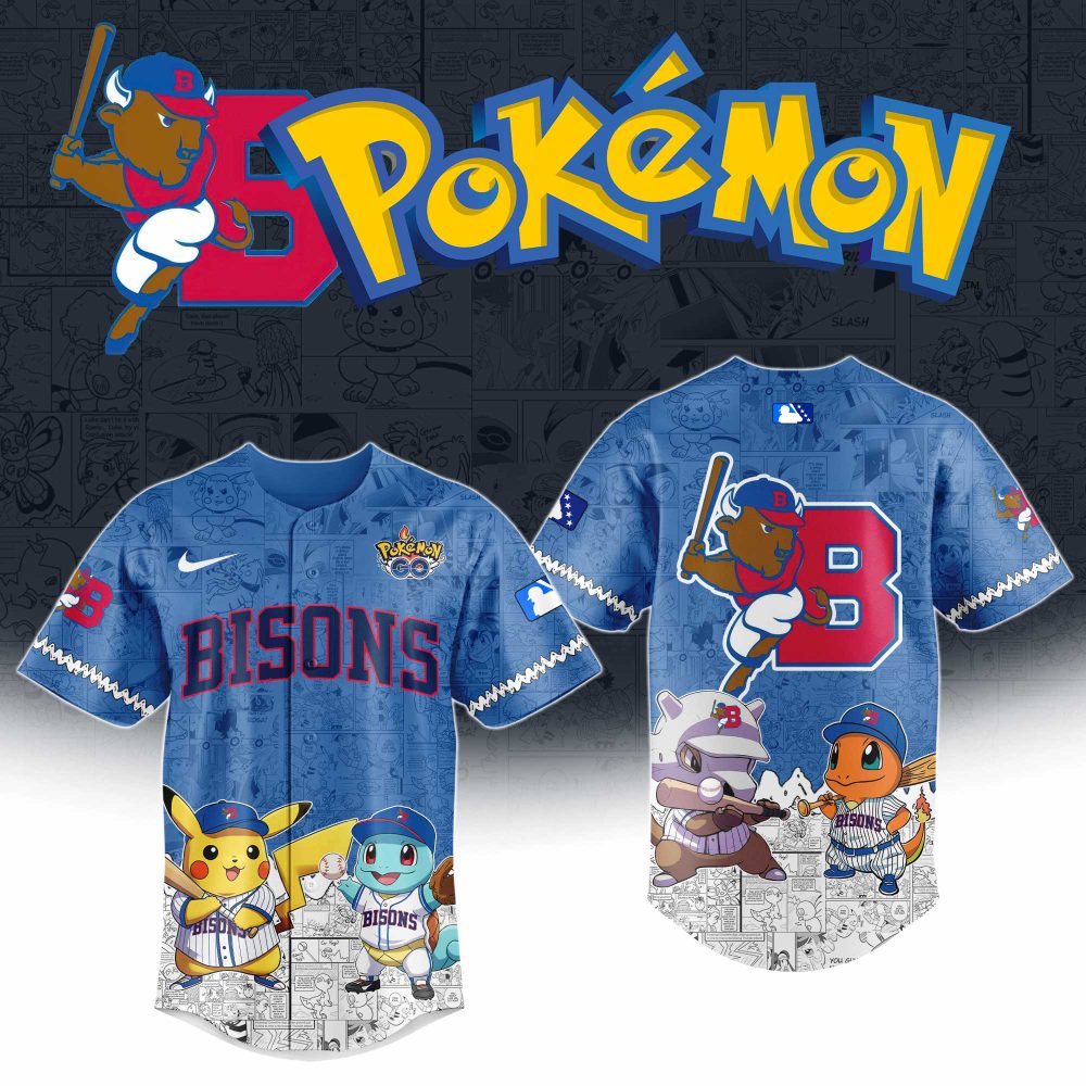 Be the first to review “Exclusive Pokémon Bisons Baseball Jersey – Pikachu, Squirtle & Charmander Design – Limited Edition”