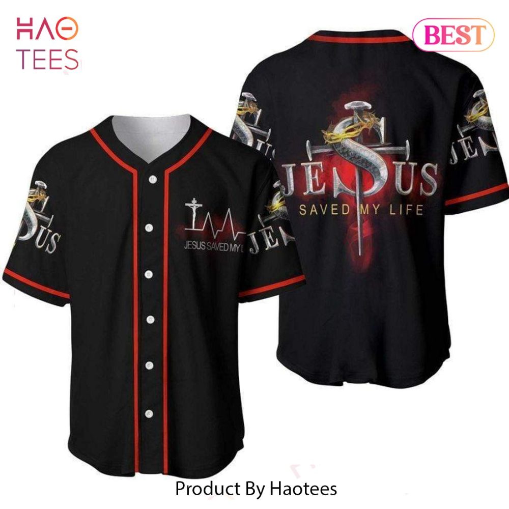 Be the first to review “Faith-Inspired Baseball Jersey – ‘Jesus Saved My Life’ Design By Haotees”