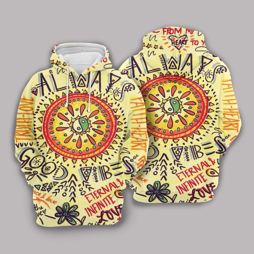 Be the first to review “Hippie Hoodie Always Good Vibes Eternals Infinite Yin And Yang Sun Yellow Hoodie Unisex”