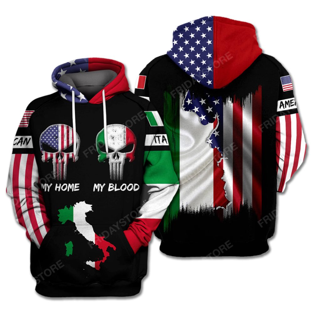 Be the first to review “Italy Hoodie Italy Skull Italy Map My Home My Blood Black American Flag Hoodie”