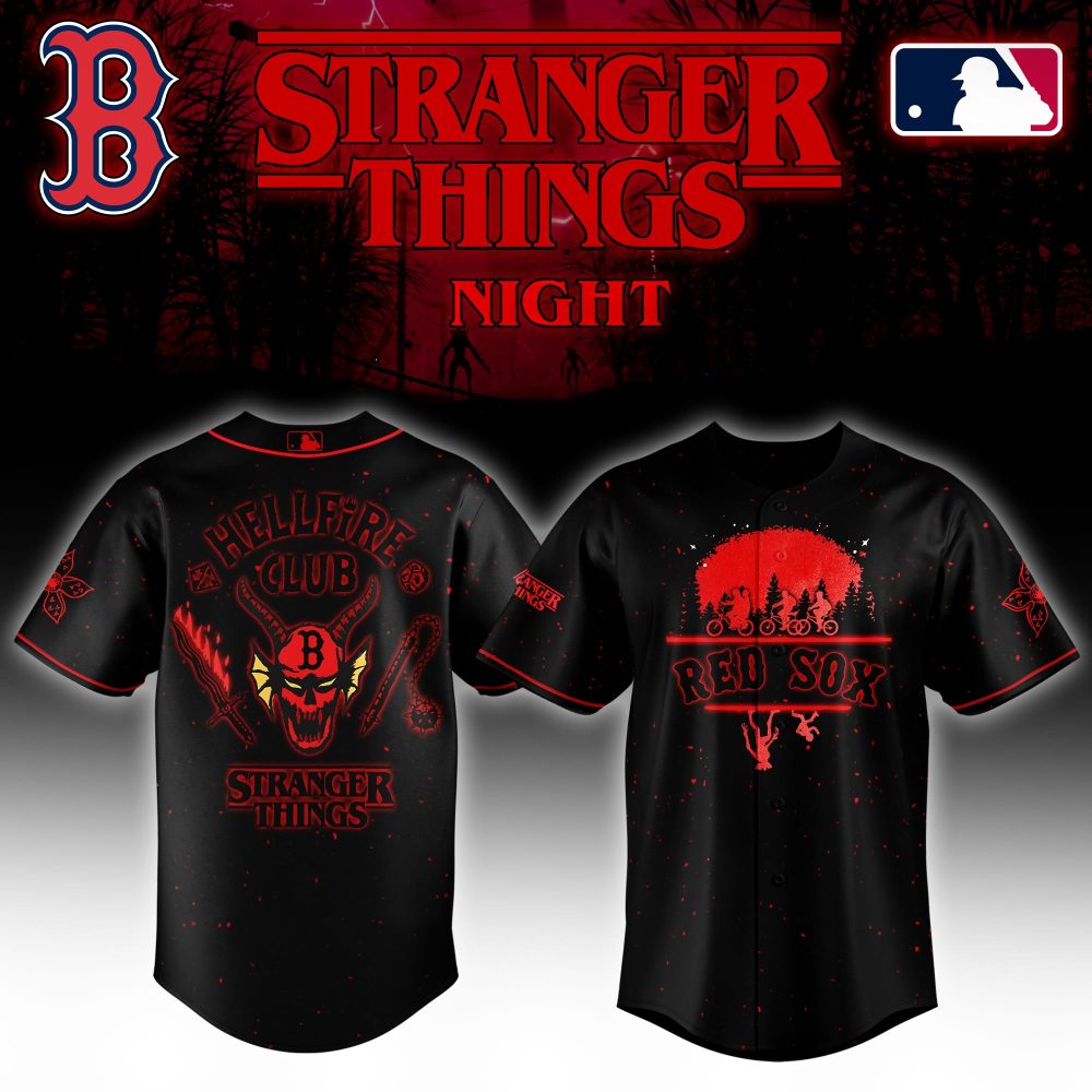 Be the first to review “Limited Edition Red Sox Stranger Things Night Jersey – Hellfire Club Design”