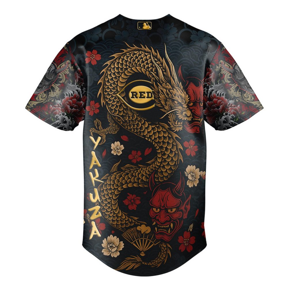 Be the first to review “Limited Edition Yakuza X Reds Baseball Jersey – Bold Dragon & Oni Design – Unisex Fashion Statement”