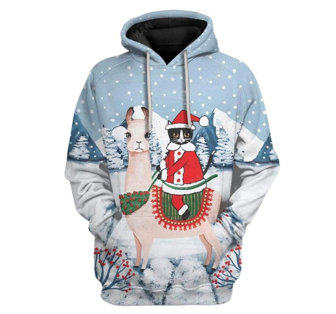 Be the first to review “Llama Christmas Hoodie Cat Rides Llama Christmas Snow Hoodie”