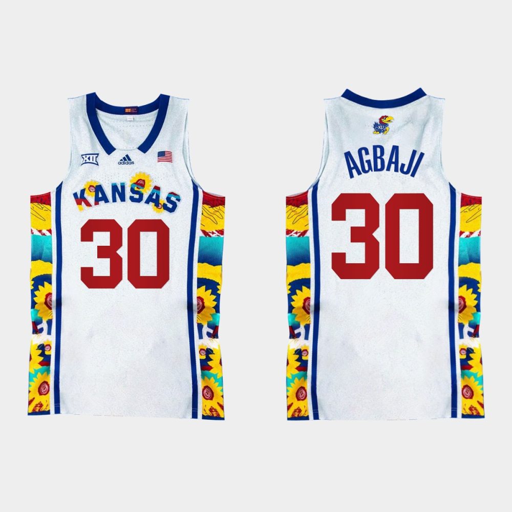Men Kansas Jayhawks Ochai Agbaji #30 Sunflower Showdown White Jersey