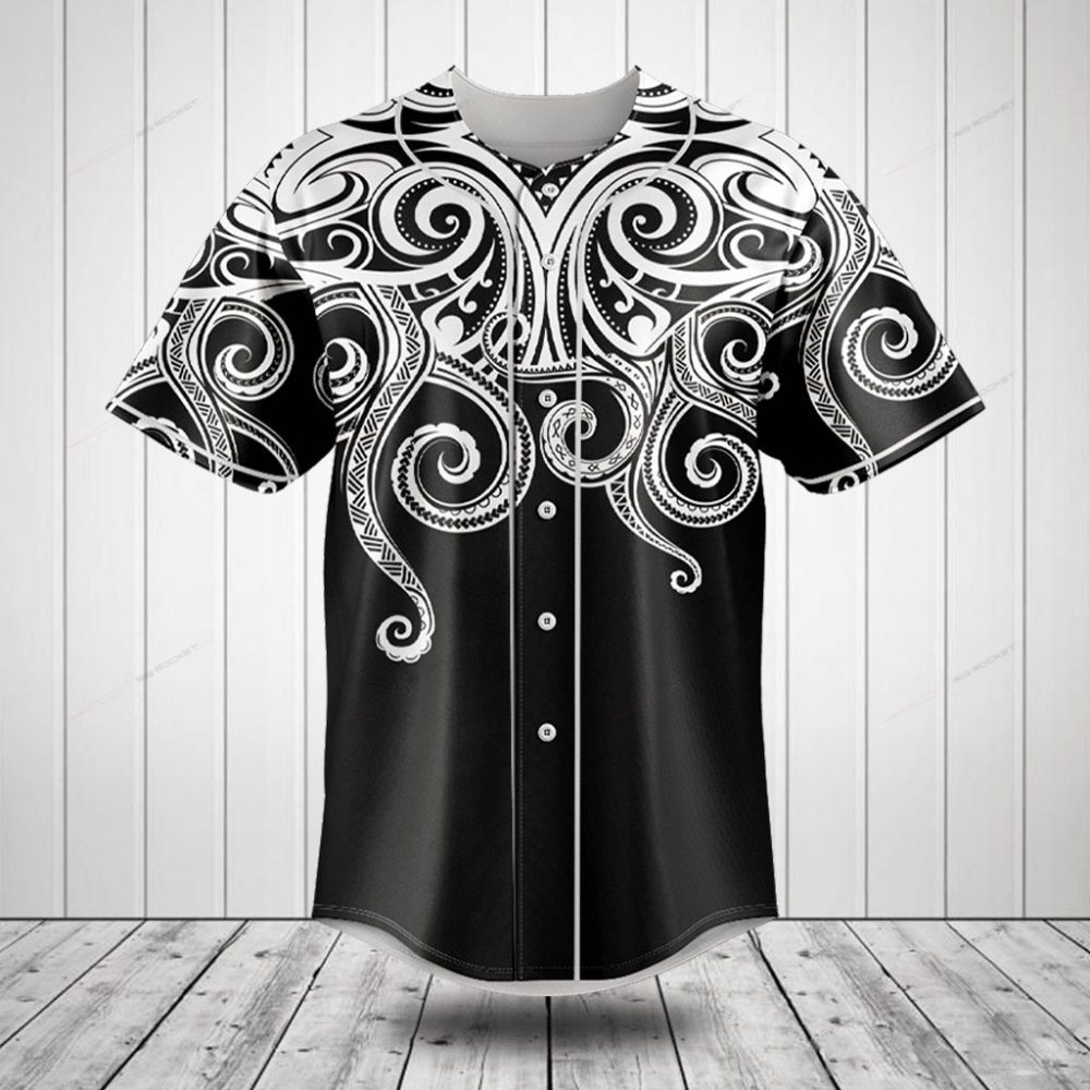 Be the first to review “Men’S Black & White Tribal Print Button-Up Baseball Jersey – Stylish & Comfortable”