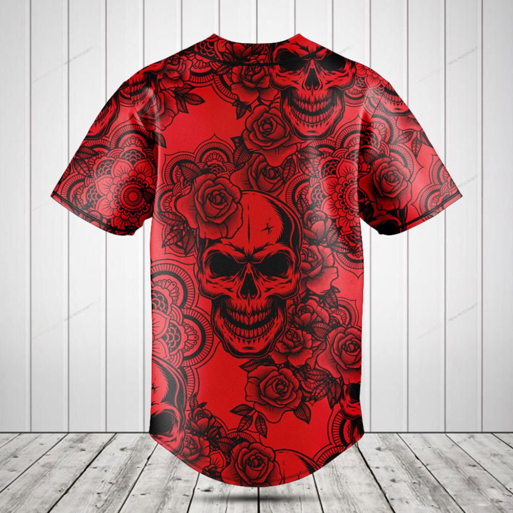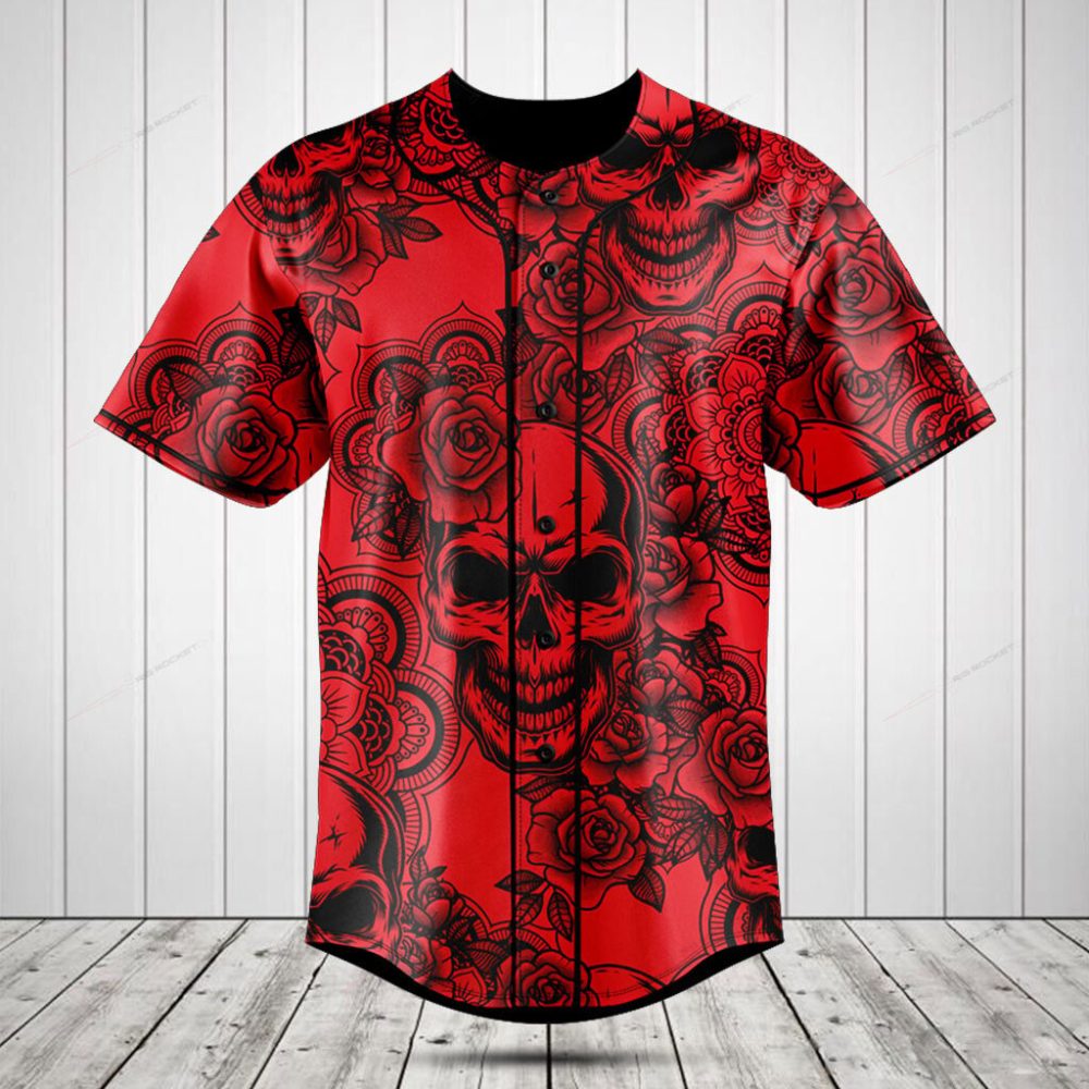 Be the first to review “Men’S Red Skull & Roses Graphic Baseball Jersey – Bold & Stylish Casual Wear”