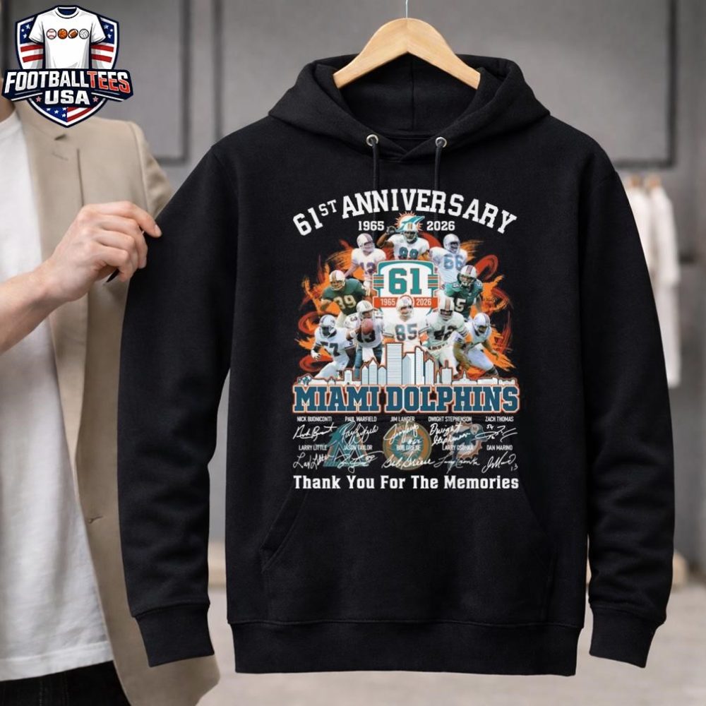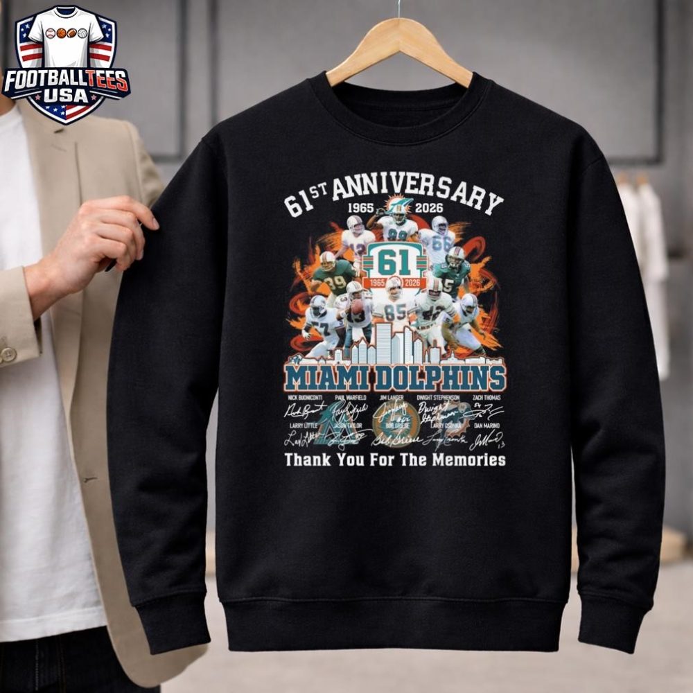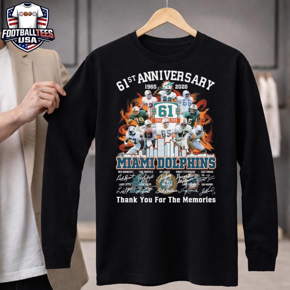 Be the first to review “Miami Dolphins Skyline 61Th Anniversary 1965-2026 Players Signatures Thank You For The Memories Unisex Shirt”