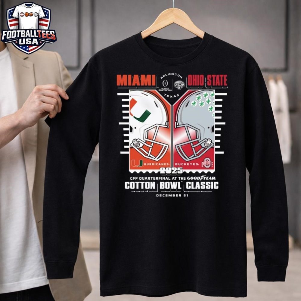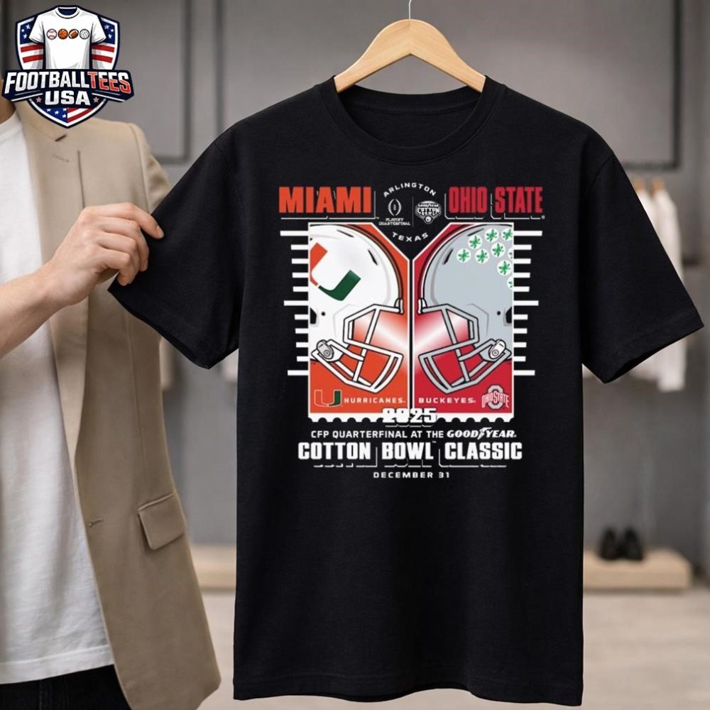 Be the first to review “Miami Hurricanes Vs. Ohio State Buckeyes 2025-26 Cfp Cotton Bowl Classic Helmet T-Shirt”