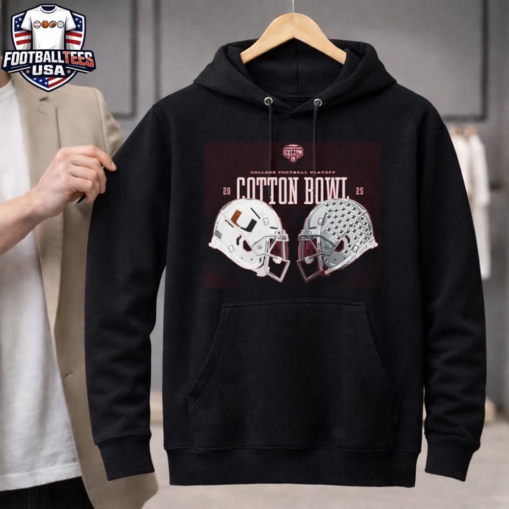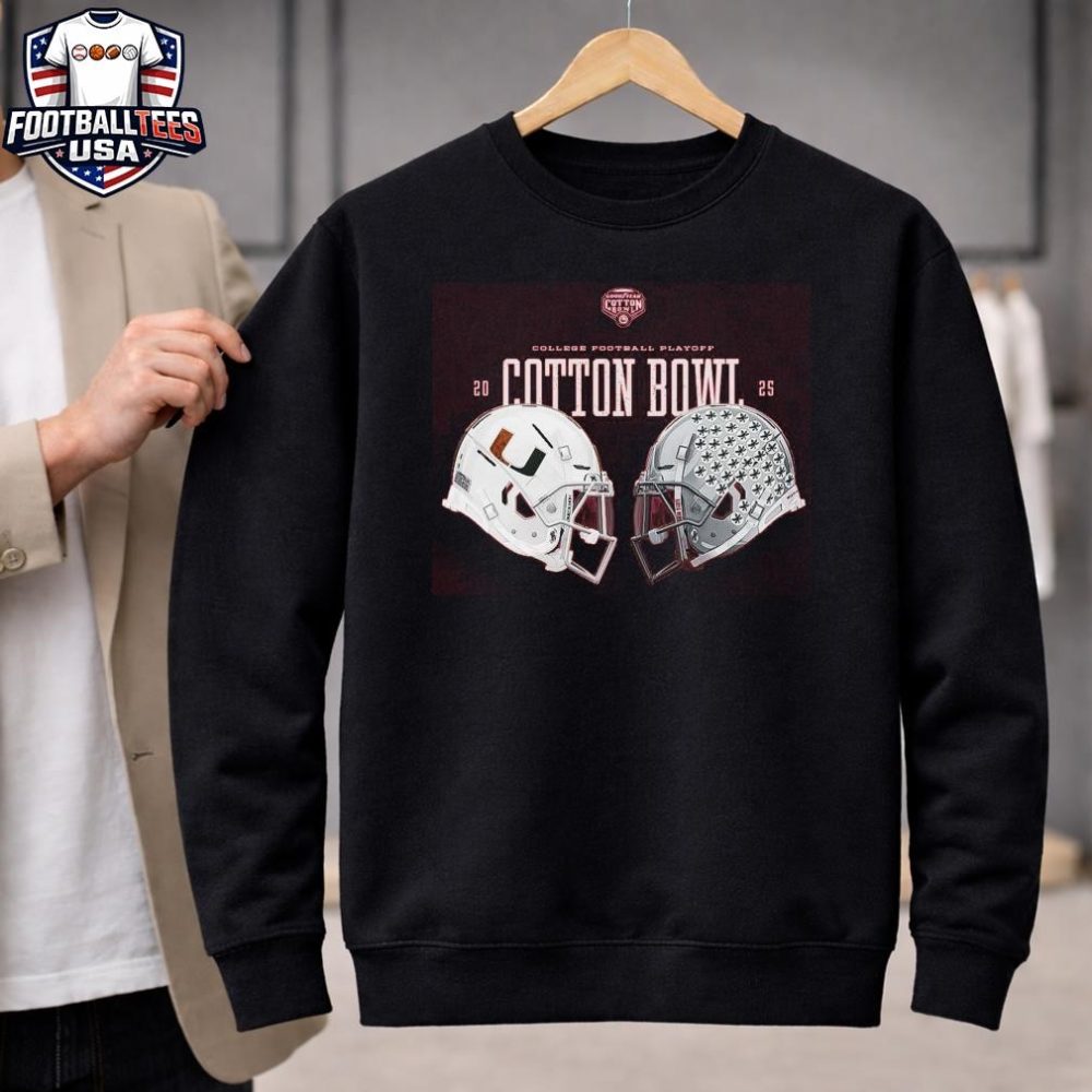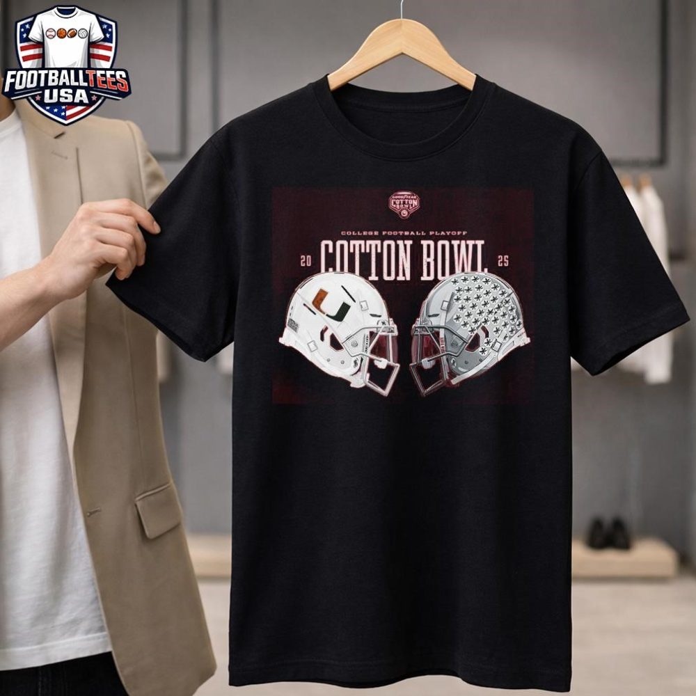 Be the first to review “Miami Hurricanes Vs Ohio State Buckeyes Cfp Cotton Bowl 2025 Helmets T-Shirt”