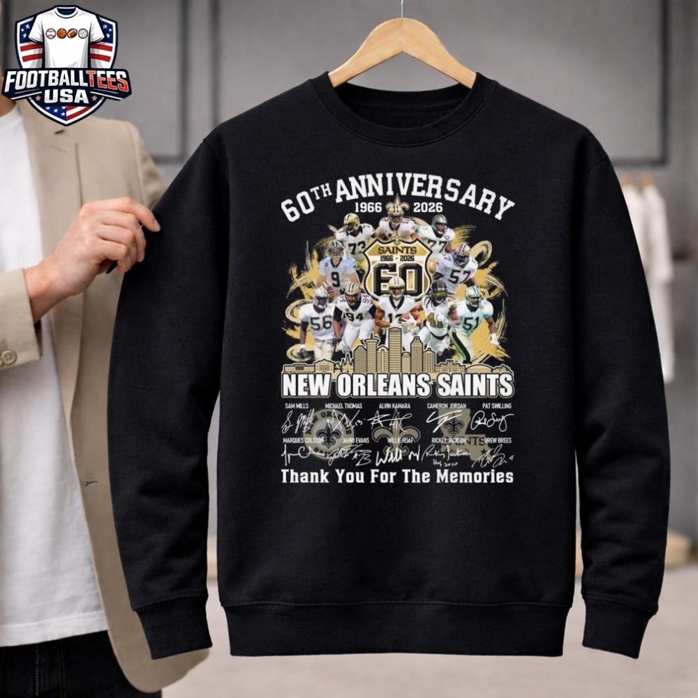 Be the first to review “New Orleans Saints Skyline 60Th Anniversary 1966-2026 Players Signatures Thank You For The Memories Unisex Shirt”