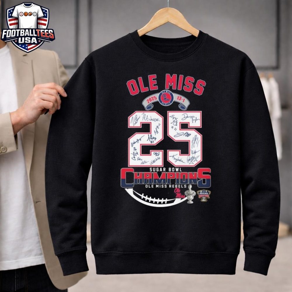 Be the first to review “Ole Miss Rebels 2025 13-1 Sugar Bowl Champions Signatures Unisex Shirt”