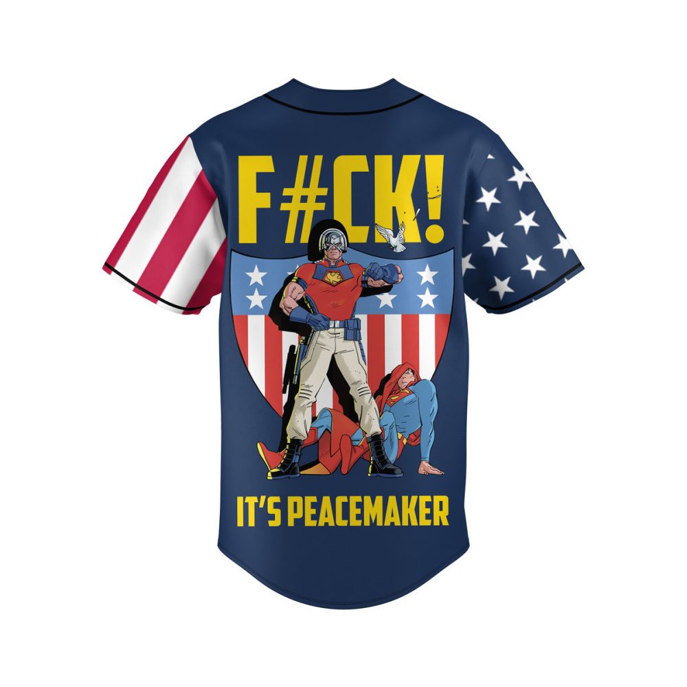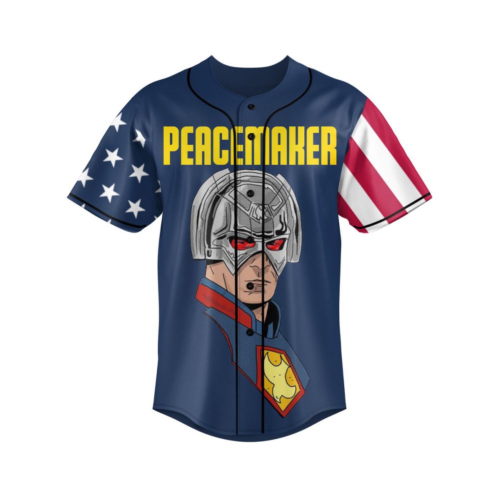 Be the first to review “Peacemaker Patriotic Baseball Jersey – Bold Superhero Style Shirt For Fans”