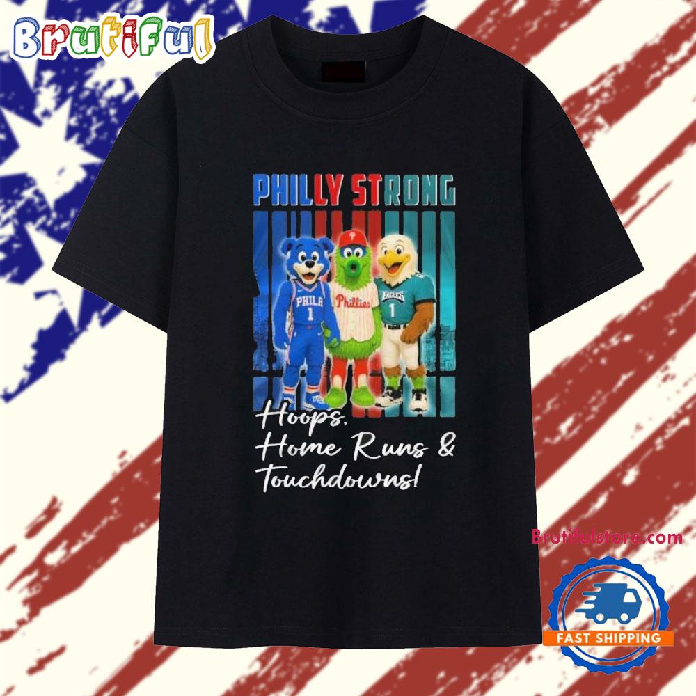 Be the first to review “Philly Strong Hoops Home Runs And Touchdowns Mascot Skyline 2025 T Shirt”