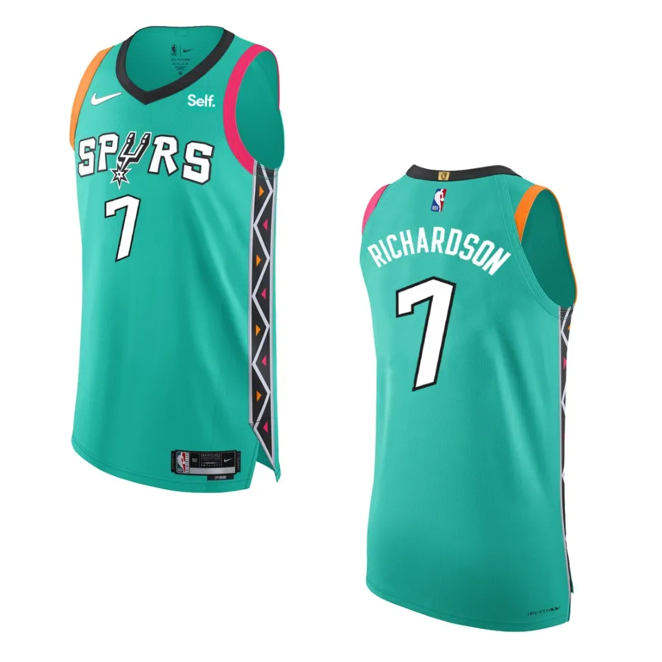 No matter where you are, you need a perfect NBA gear that can help you better show your support! This San Antonio Spurs City Edition Josh Richardson 2022-23 Turquoise Jersey will be your best companion for the next big game! Featuring classic NBA graphics, this sweet gear will keep you comfortable and full of team spirit.