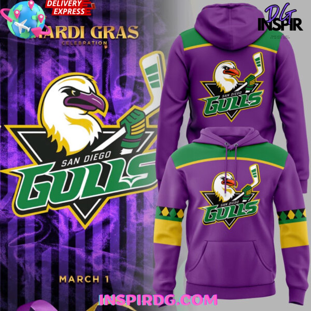 Be the first to review “San Diego Gulls Mardi Gras 2025 All Over Print Hoodie, 3D Hoodie”