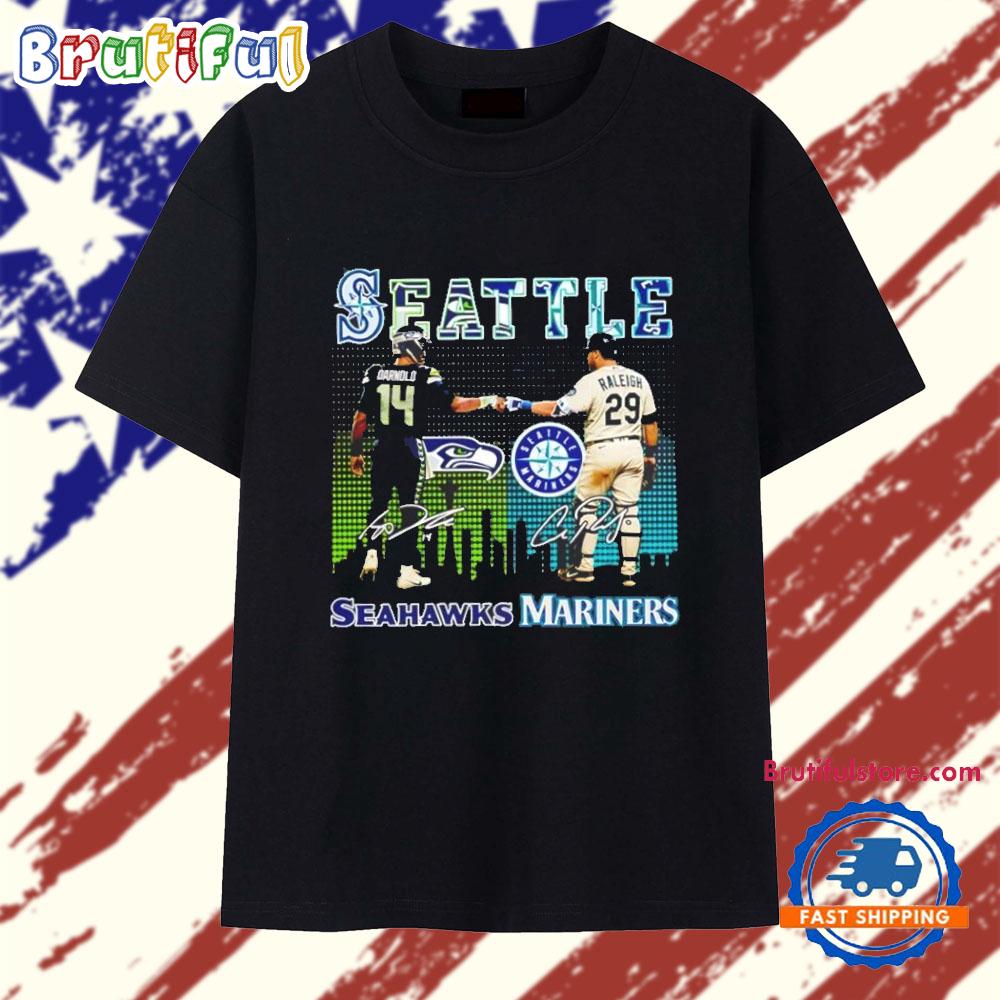 Be the first to review “Seattle Seahawks Sam Darnold And Seattle Mariners Cal Raleigh Skyline City Signatures T Shirt”