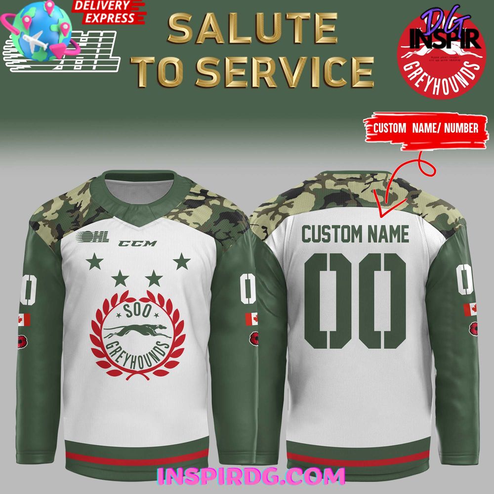 Be the first to review “Soo Greyhounds Salute To Service 2024 Green Hockey Jersey”