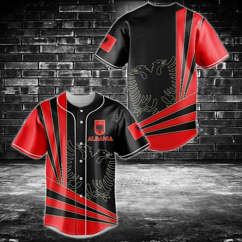 Be the first to review “Stylish Albania Flag Baseball Jersey – Bold Black & Red Design For Fans”